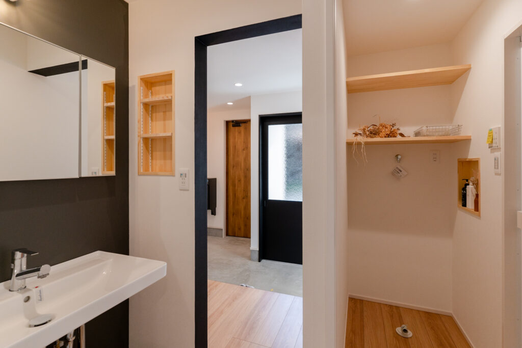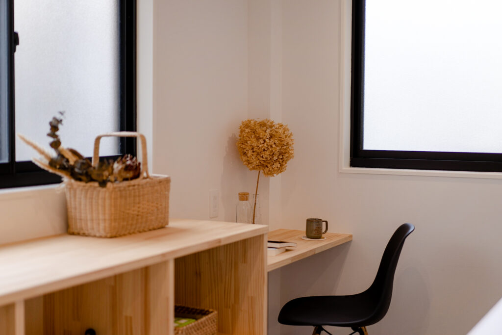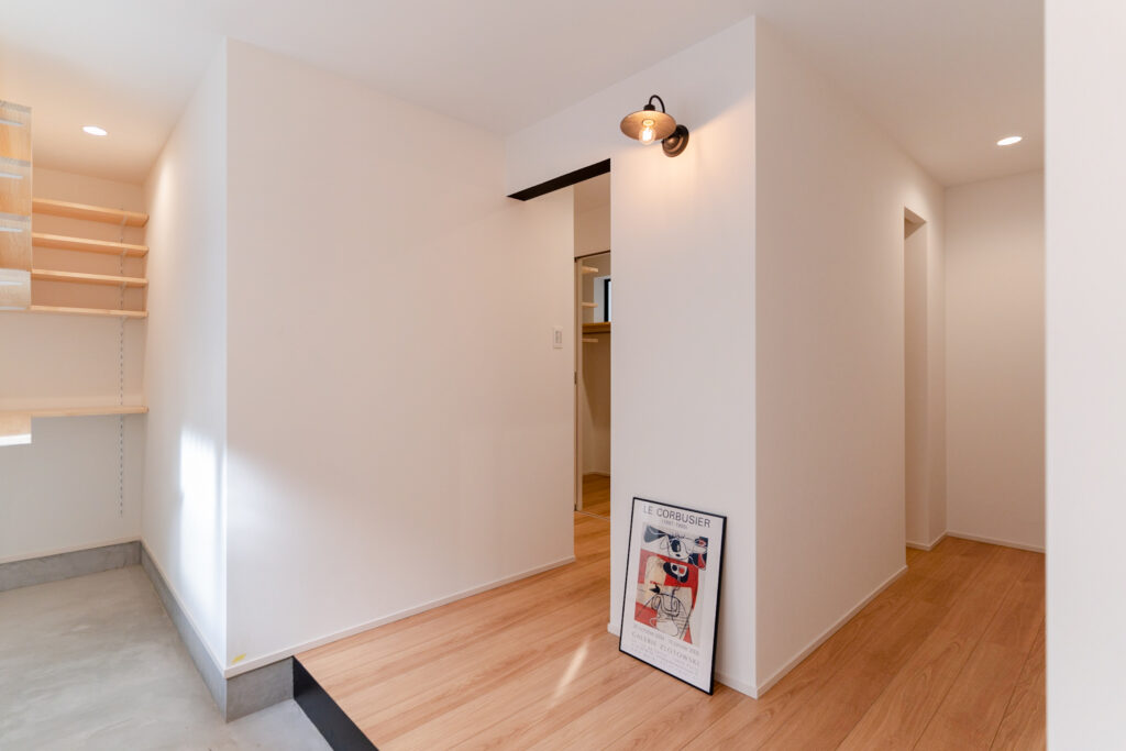 一階は水回りやクローゼットがあり、クローゼットの中には密かなワークスペースも。