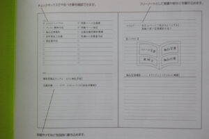 「MEETING NOTE BOOK」は行うべき事項をまとめて書く部分がありとても見直しやすく、右側は詳しい内容を書くスペースになっています。今までは普通のノートに箇条書きで書いてました。まとめることはせずに見にくかったし、見直しもしにくいなぁと思っていて、このノートの良さに気づきました!