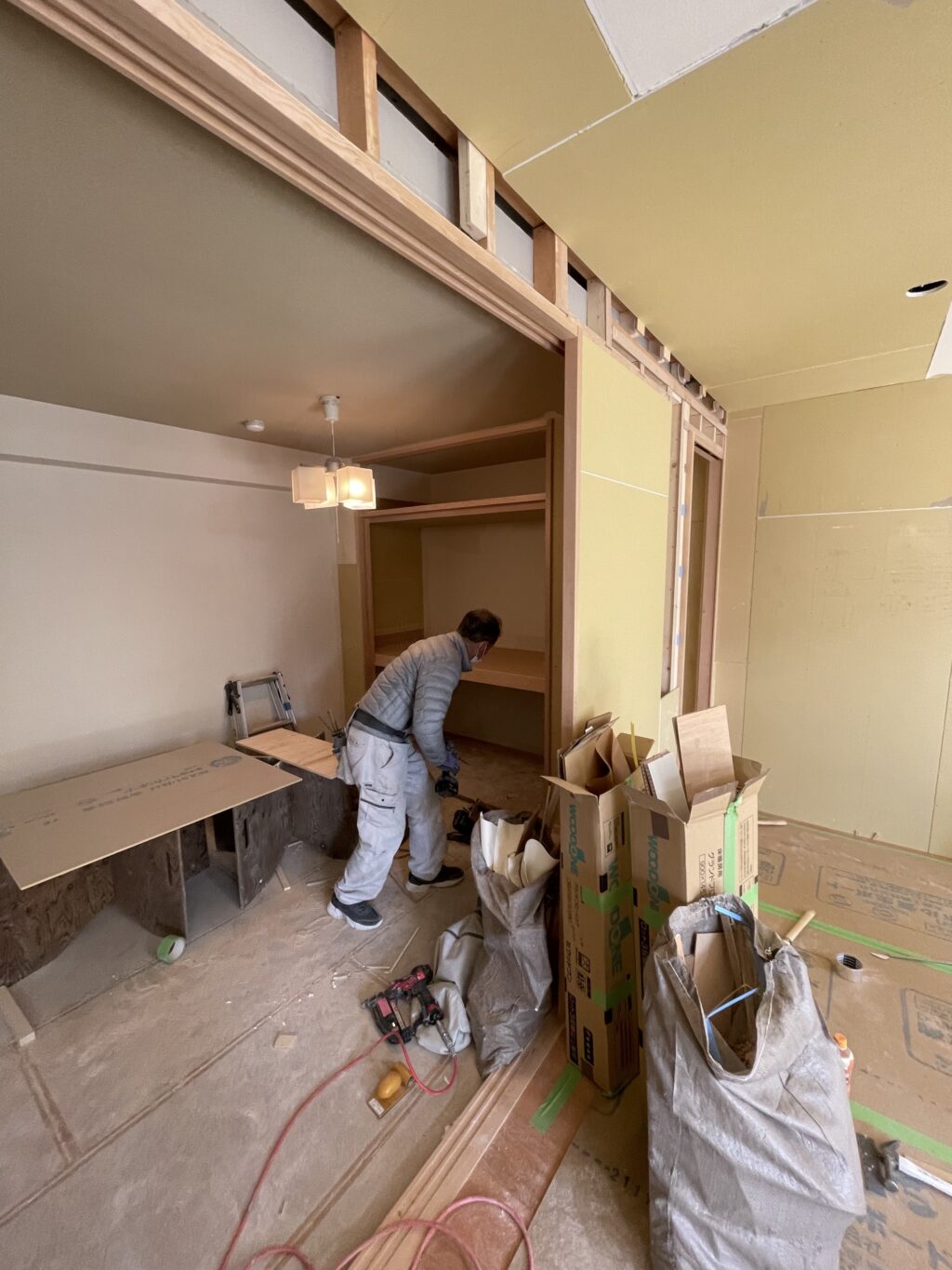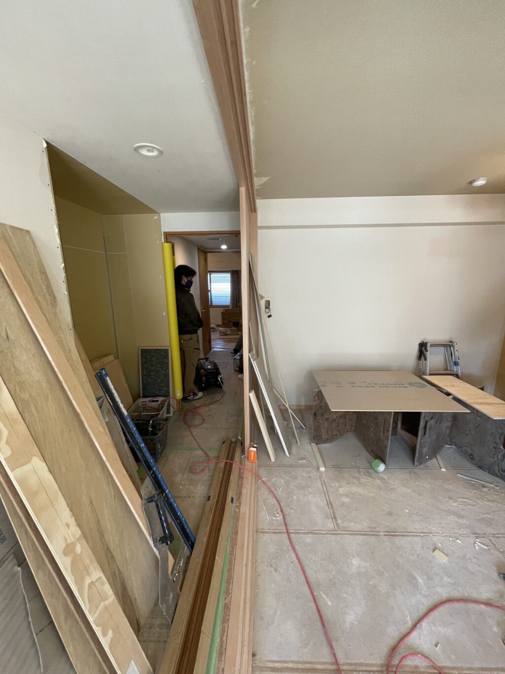 フルリノベーションではないので、既存の建具や壁が残りつつ、住みやすいお家に変わりつつあります。