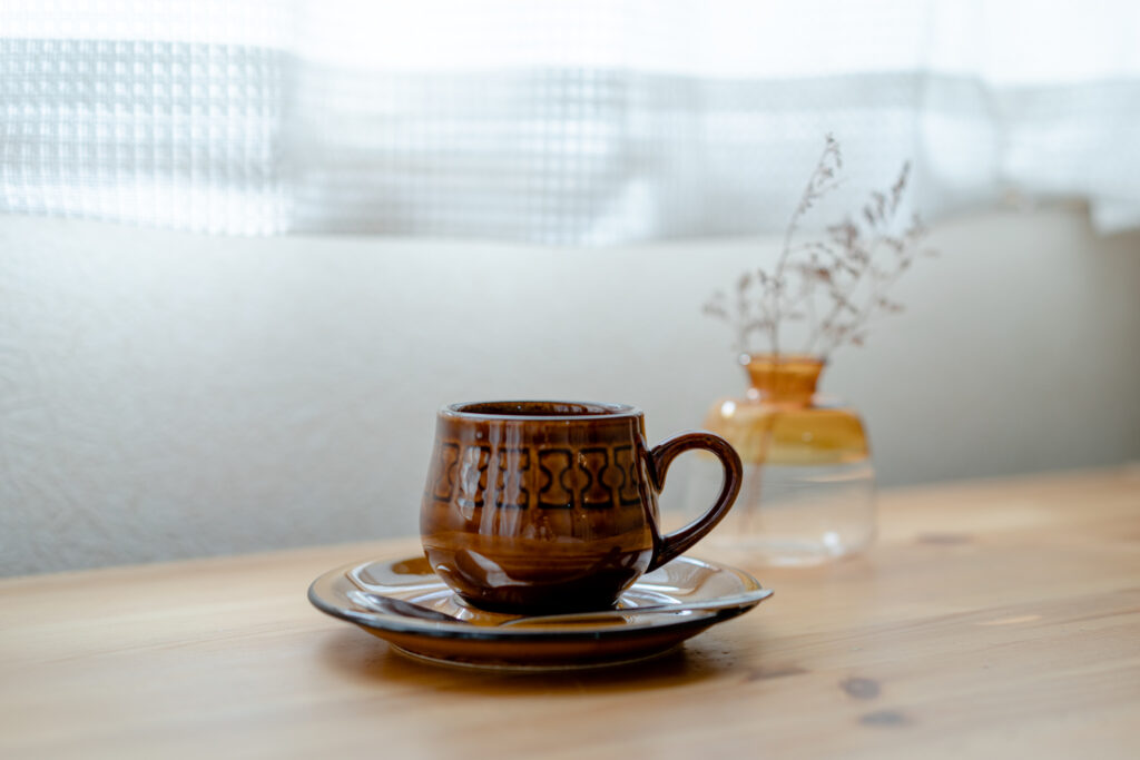 こちらは、家で練習してたもの。お気に入りのカップをメインに撮りました。