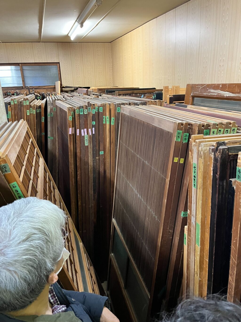 全て古建具ですが、在庫の量がまあ凄かったです。。圧倒されました。