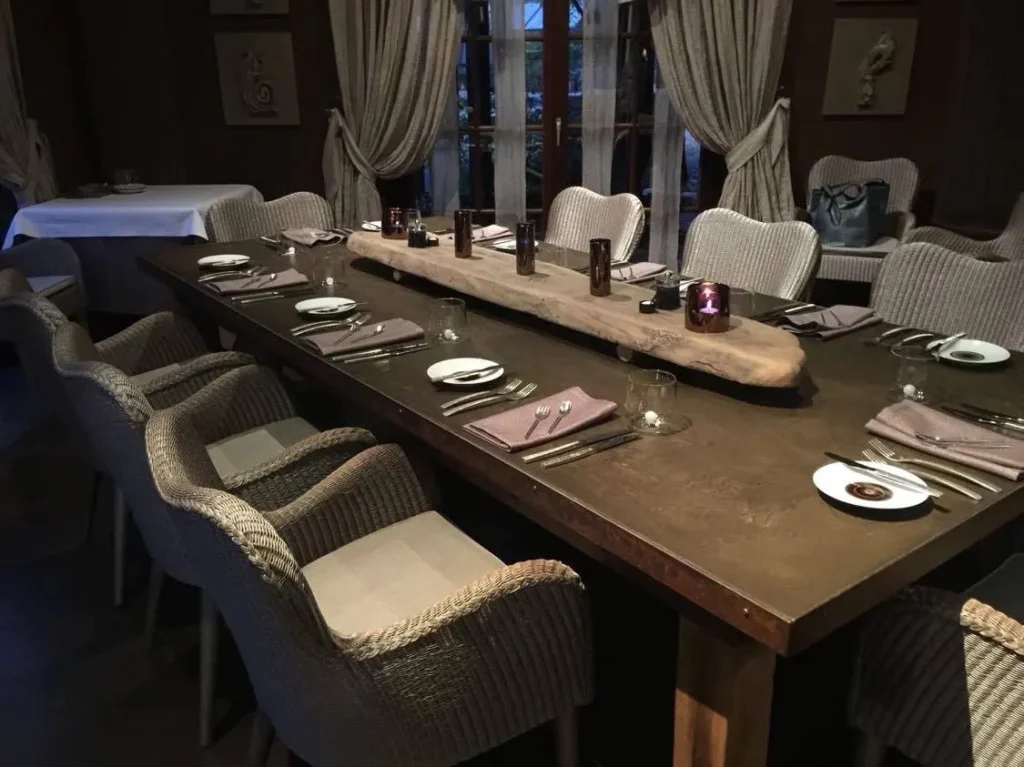 上部の写真はベルギーにあるレストランで、左官材料モールテックスを施工した後、約20年ほど経過したテーブル。