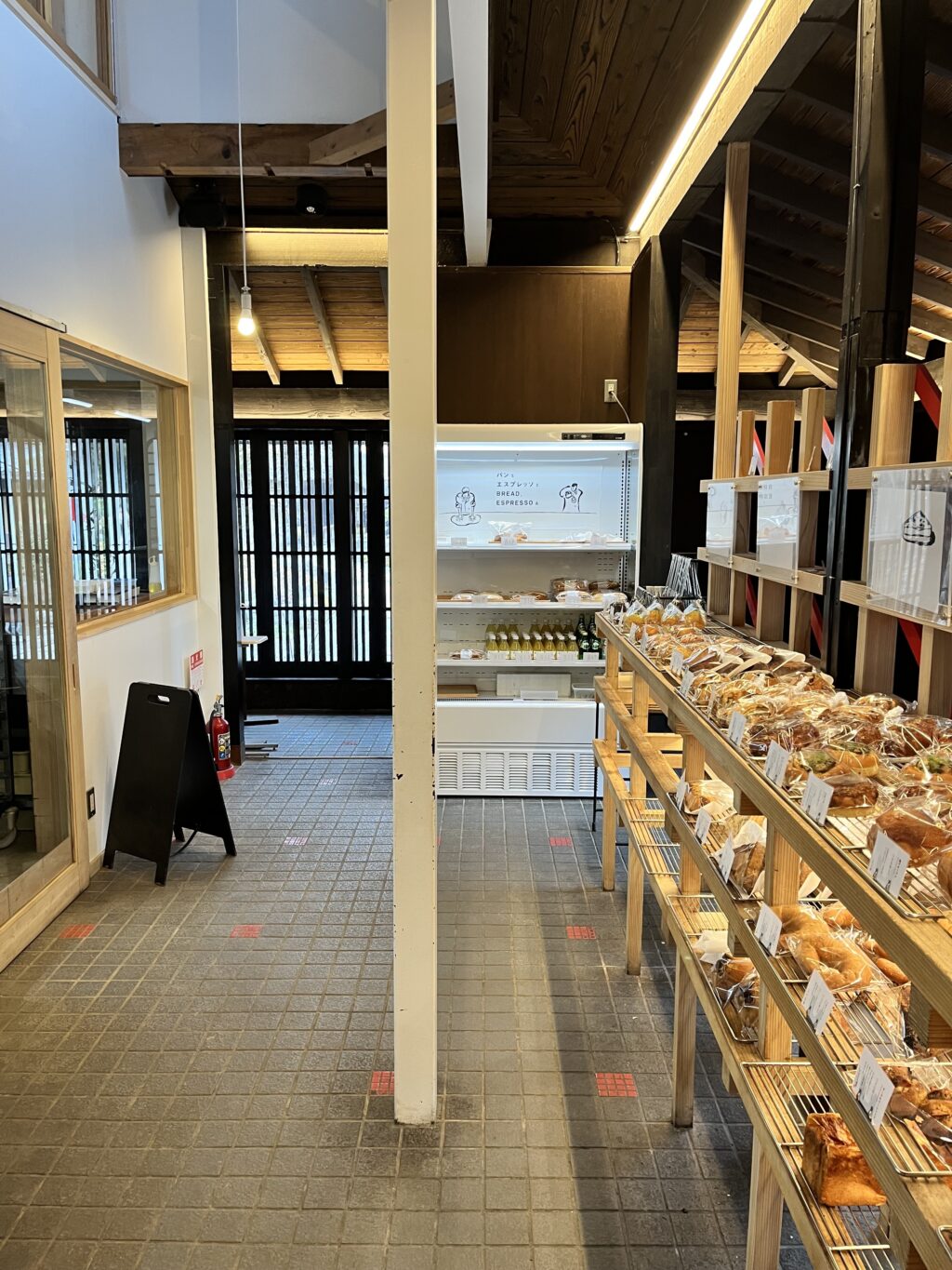 テイクアウト専用のお店とカフェが隣になっていたのですが、どちらもリノベーションしている内装でした。景観上、周辺環境を阻害することなく生かし、内部を必要に応じてデザインする方法はリノベーションの醍醐味だと思います。