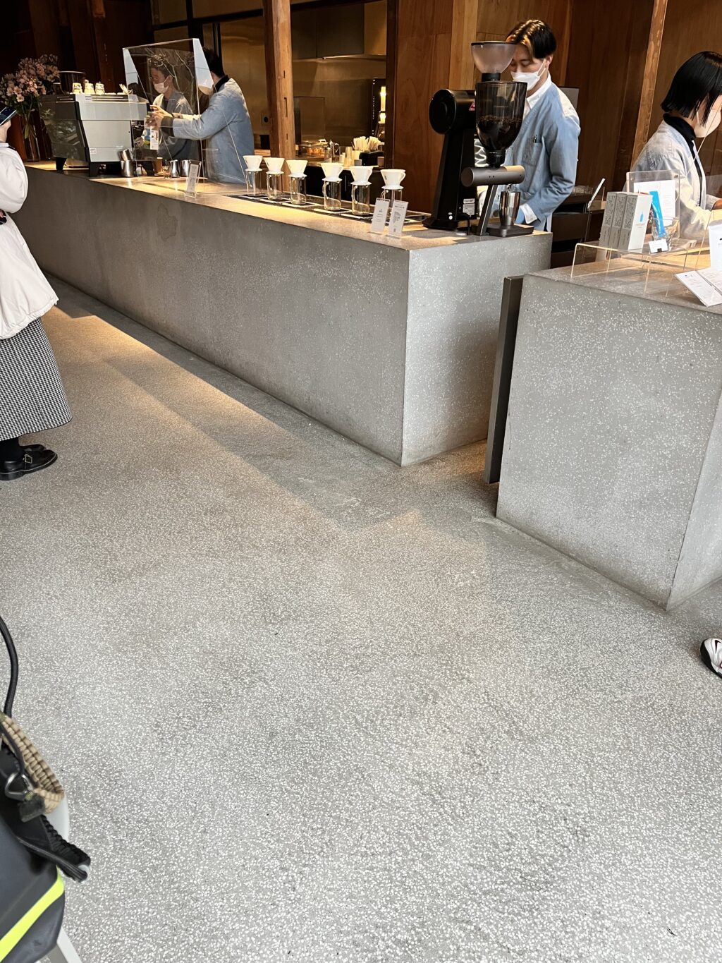 床の洗い出しも、カウンターのテラゾーも全体の素材のバランスが綺麗でそれぞれが際立っている印象です。