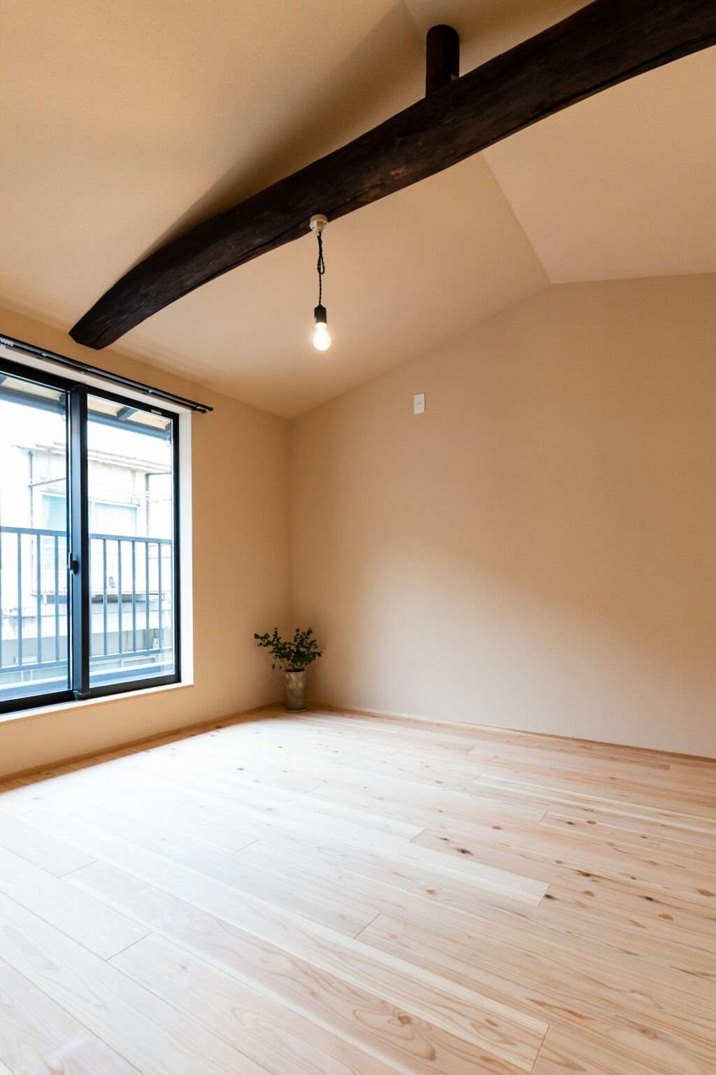 吹き抜けにし柱、梁を塗装