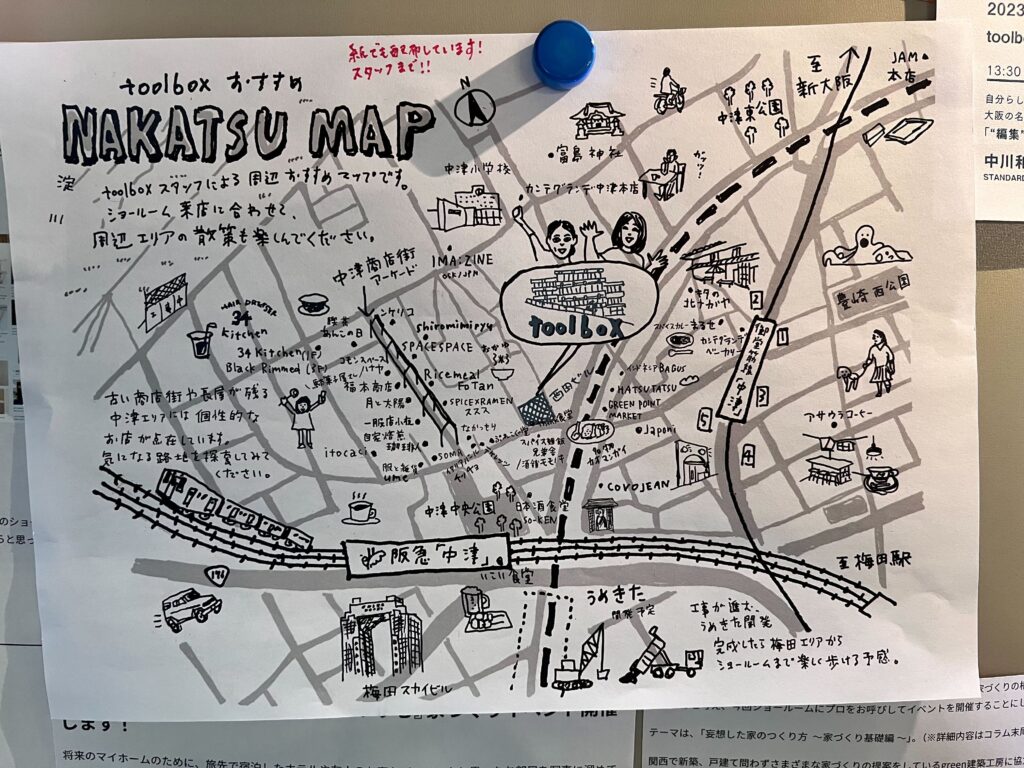 手書きで中津周辺のお店などを紹介しているのですが、私たちが御殿山でこれから作ろうとしているマップにとても似ていて驚いたのです。