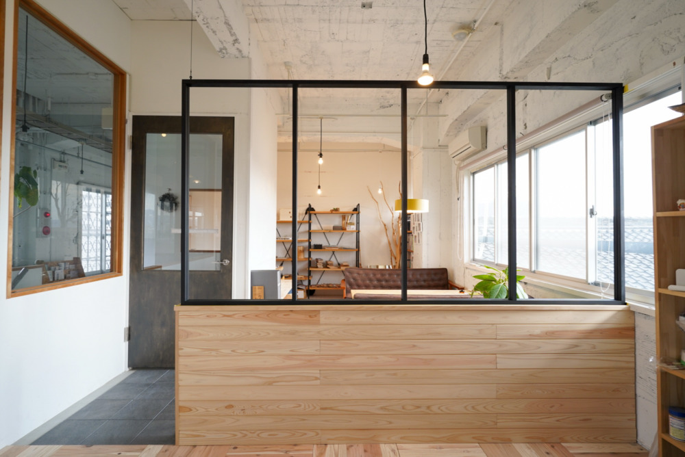 まず、お客様スペースとイベントスペースを仕切る壁なんですが枠組みがほぼ完成!