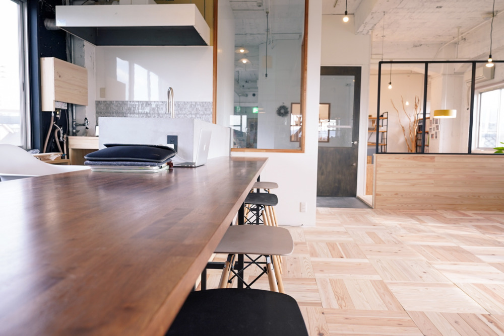 イベントスペースの方には、キッチンとダイニングテーブルを設置しています。インスタライブやストーリーを