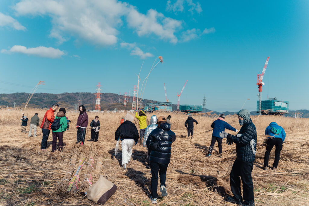 先日、2月7日にgreenの仲間と一緒に淀川に自生する「ヨシ」を刈りに行ってきました!