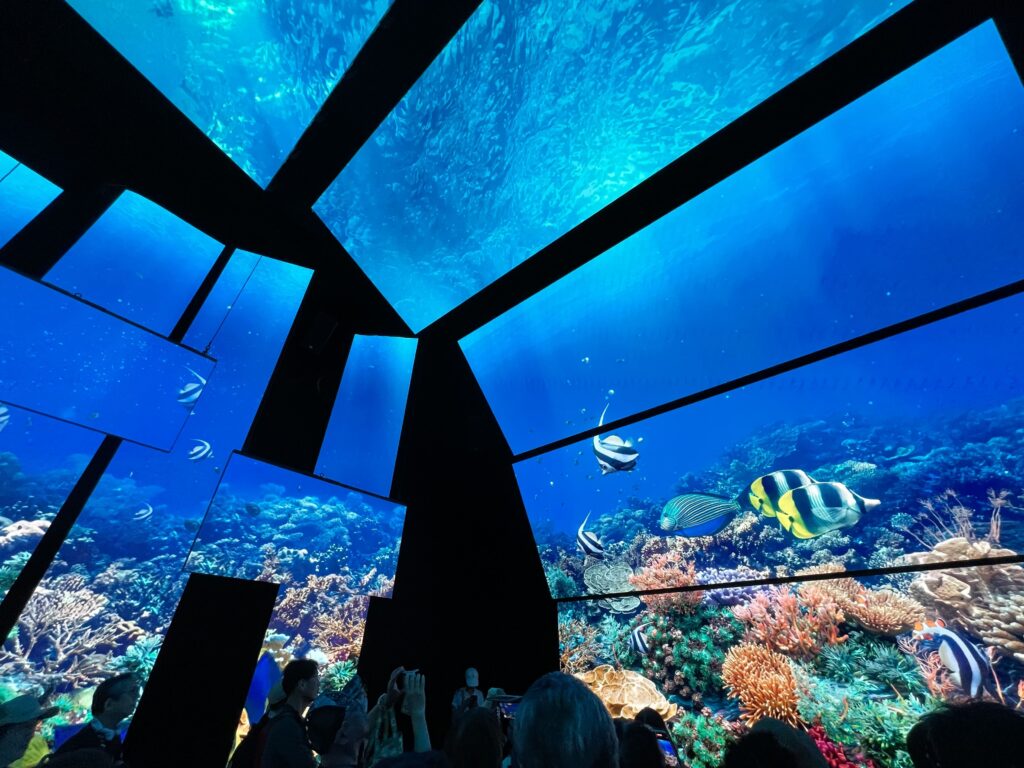 建築家の重松象平氏とコラボしたルイヴィトンの展示は迫力があり圧巻でした。