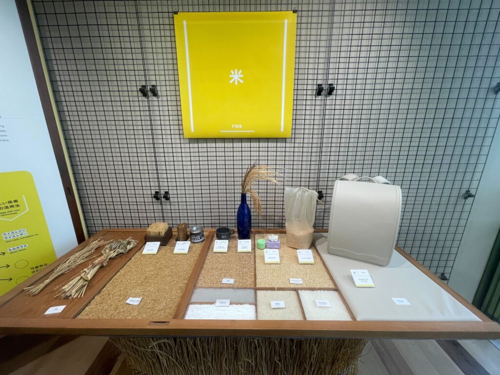 これが、そのライスレザーのランドセルです。これ、元は「お米」でできているんです。驚きですよね。