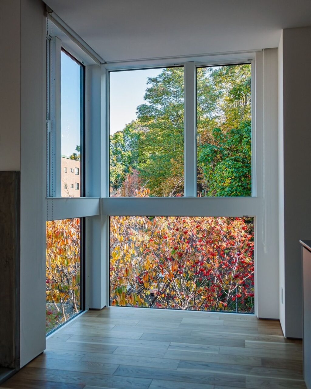 庭に積もる落ち葉や、近所の公園の木々の彩りも、窓越しに見ると住まいの景色になります。