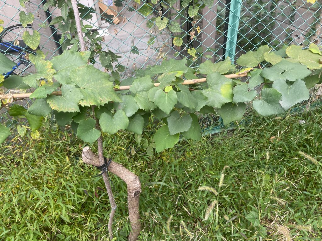 右のぶどうは、キャンベル・アーリーという品種で赤紫色の実をならせて、ワインやジャムによく使われます。高温多湿の日本でぶどうの栽培は難しいですが、挑戦してみるそうです。