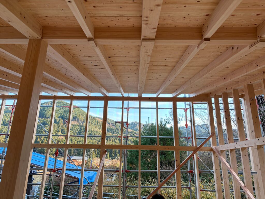 昨日は、その建て方工事が行われると聞き、西粟倉の現場を訪れました。2棟が無事に上棟し、建物の輪郭が立ち上がった姿を見ることができました。前回の単身型とは異なり、内部空間の広がりや、外部に対する開き方が今回の設計の大きなポイントとなっています。