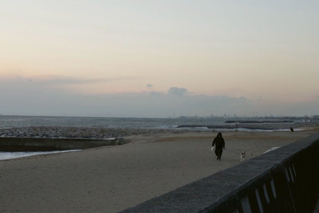 海の方へ歩くと、夕方の光がとても穏やかで、