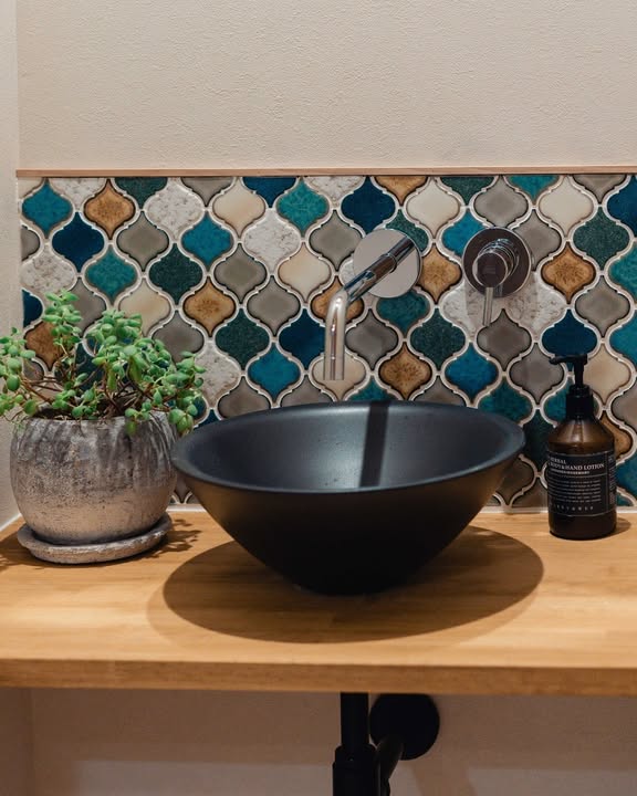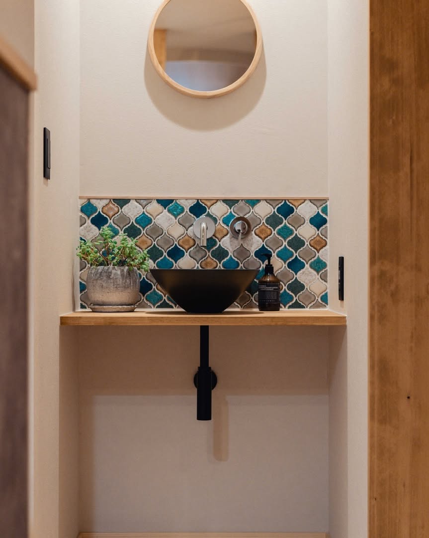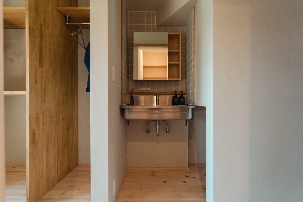 素材そのものの味わい深さがあり、和モダンな洗面空間にぴったりです。