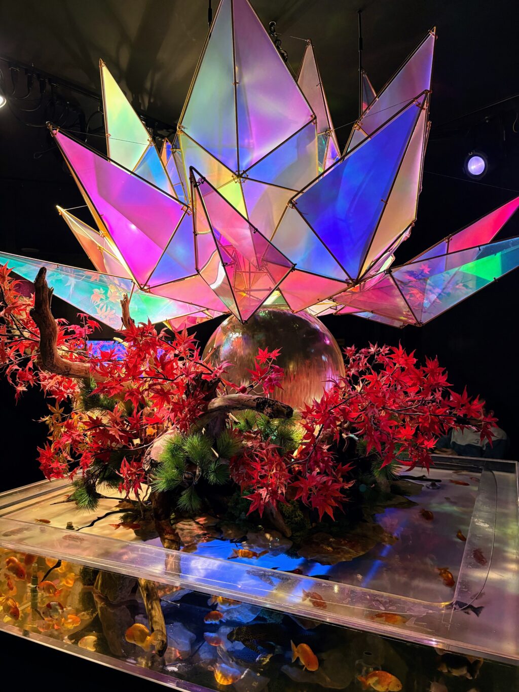 色鮮やかなアート空間の中で、可愛い金魚たちが優雅に泳ぐ姿はとても印象的でした。気がつけば夢中でたくさん写真を撮っていました。子どもたちも異世界のような空間を楽しそうに動き回り、家族で特別な時間を過ごすことができました。