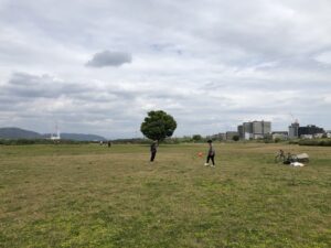 事務所の前は淀川河川敷。
