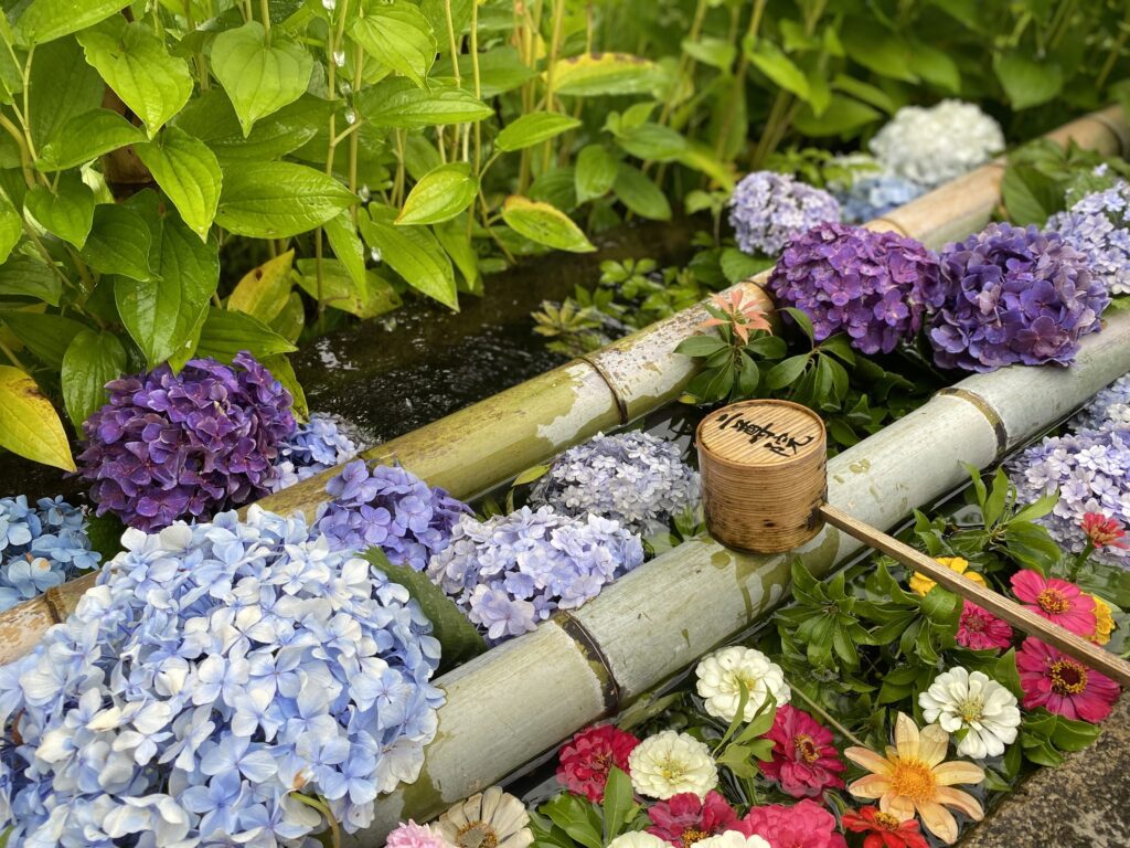 出水舎が、花手水になっています。