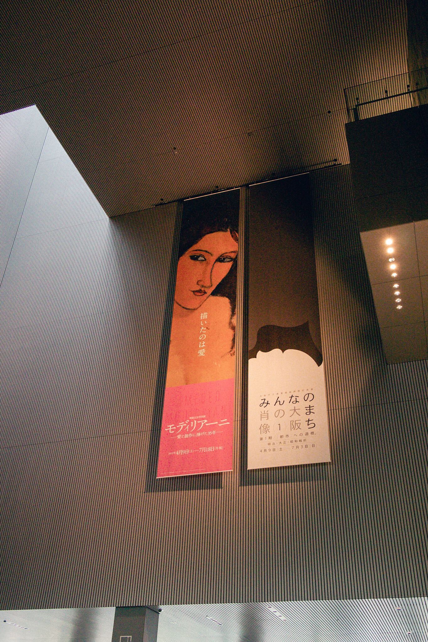 見上げるほどの高い天井から何本ものワイヤーが下りてきて、小さな照明がきれいな水平ラインを保って吊るされています。