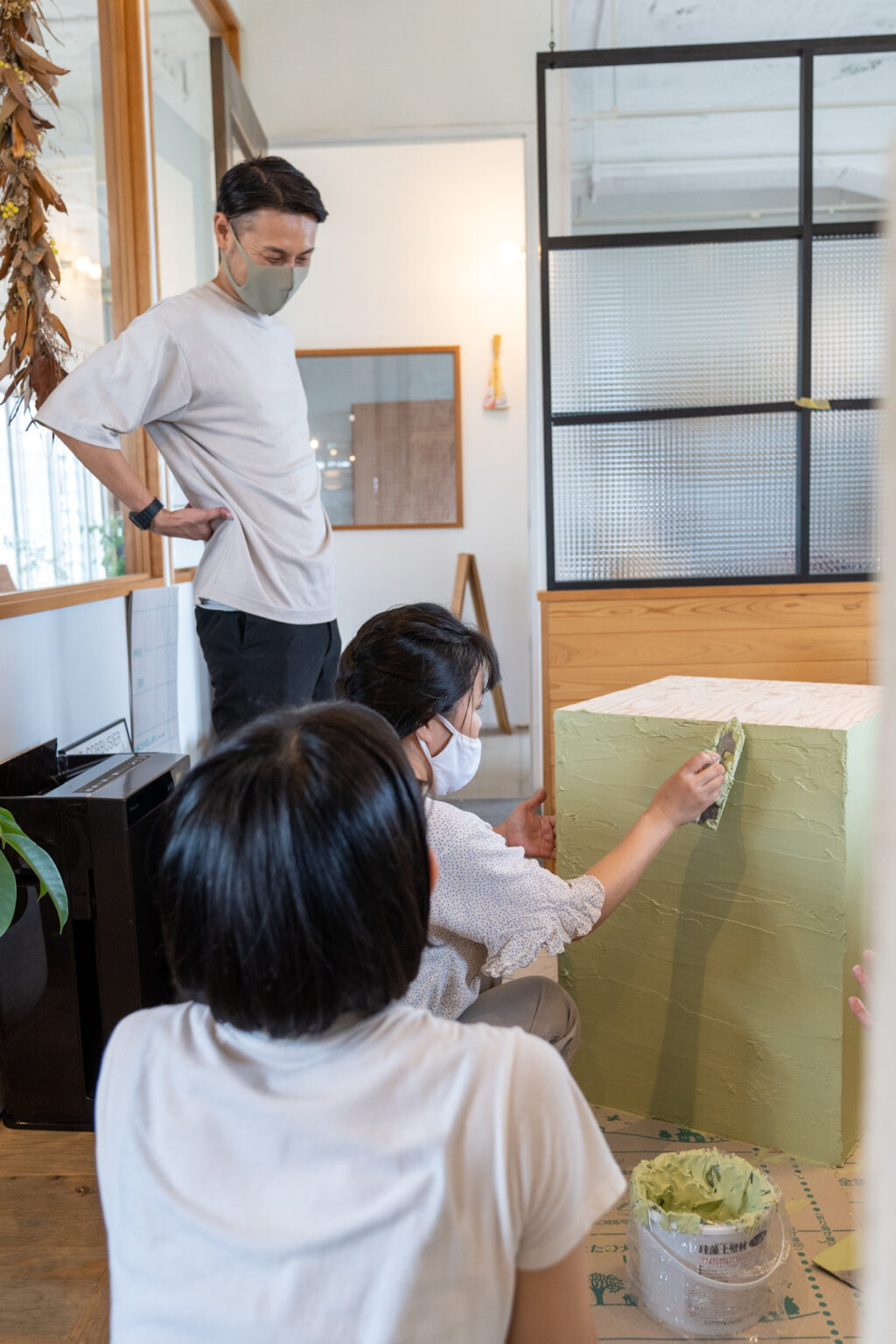 先日はみんなでレジ台の塗装にチャレンジしました。とても素敵な手作りのレジ台が出来上がりました~!!!