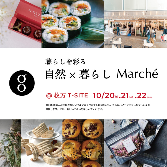 第5回目となるgreen建築工房主催の暮らしを彩る『自然×暮らしマルシェ』を枚方T-SITEにて開催致します。