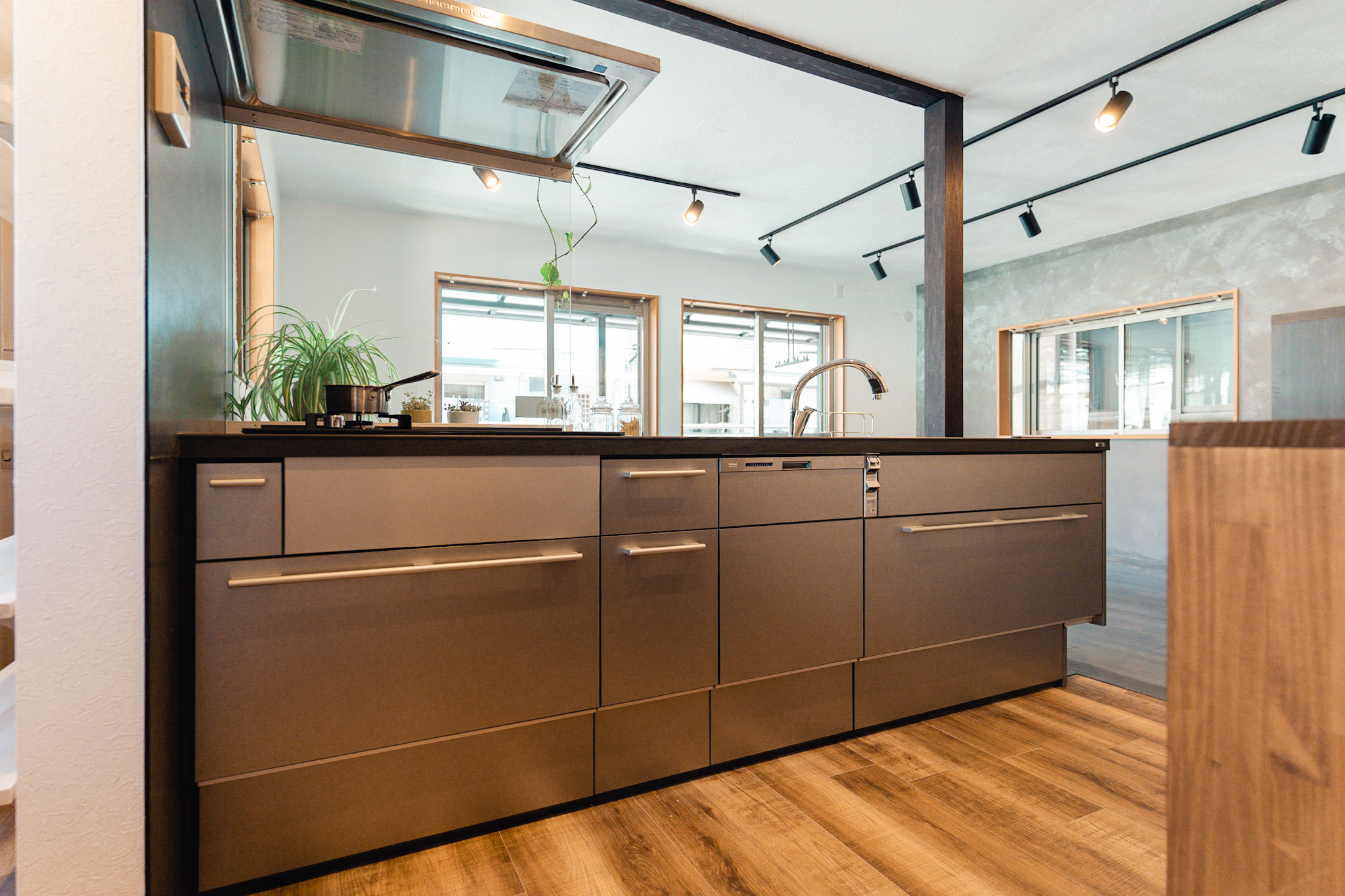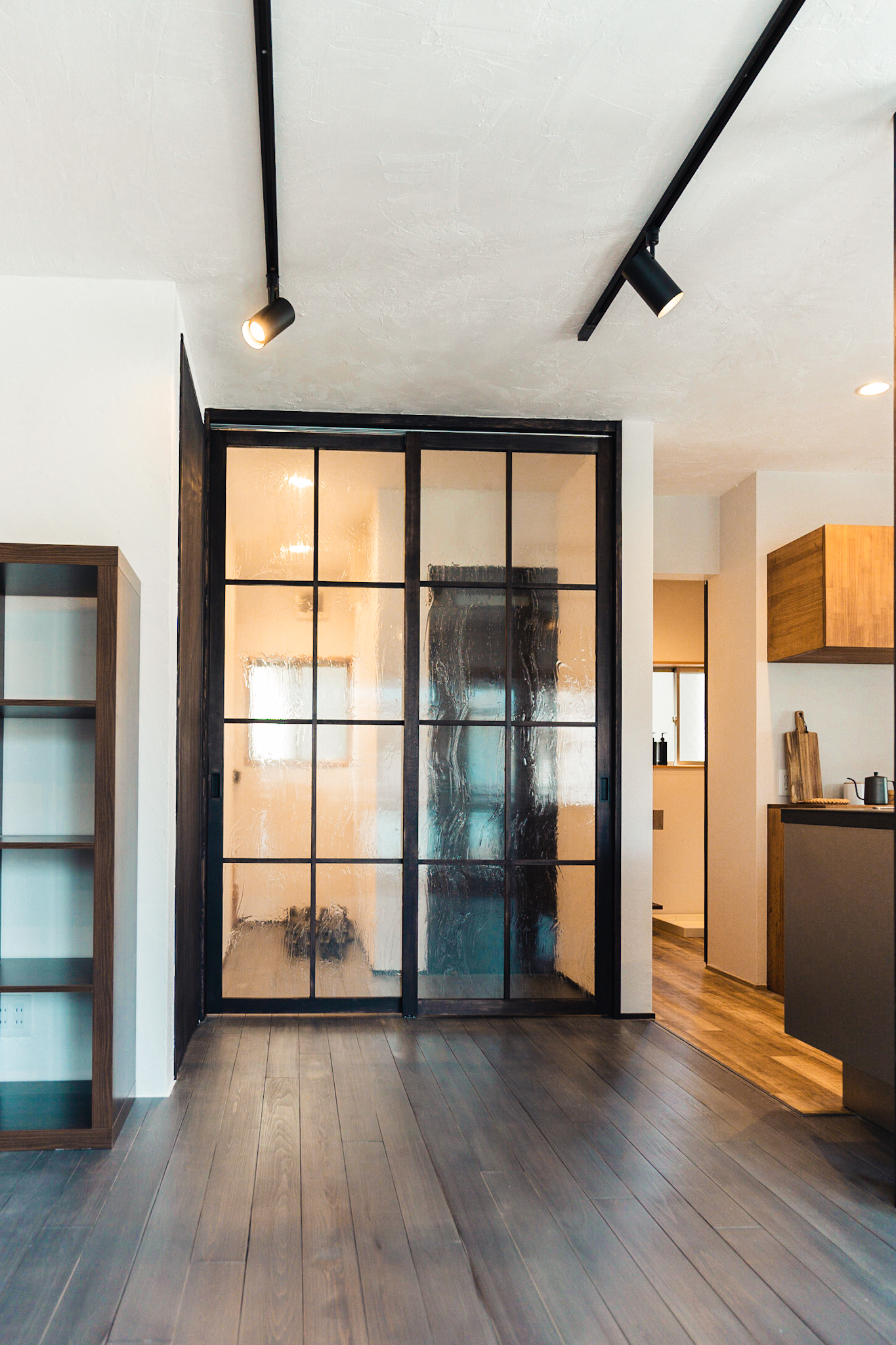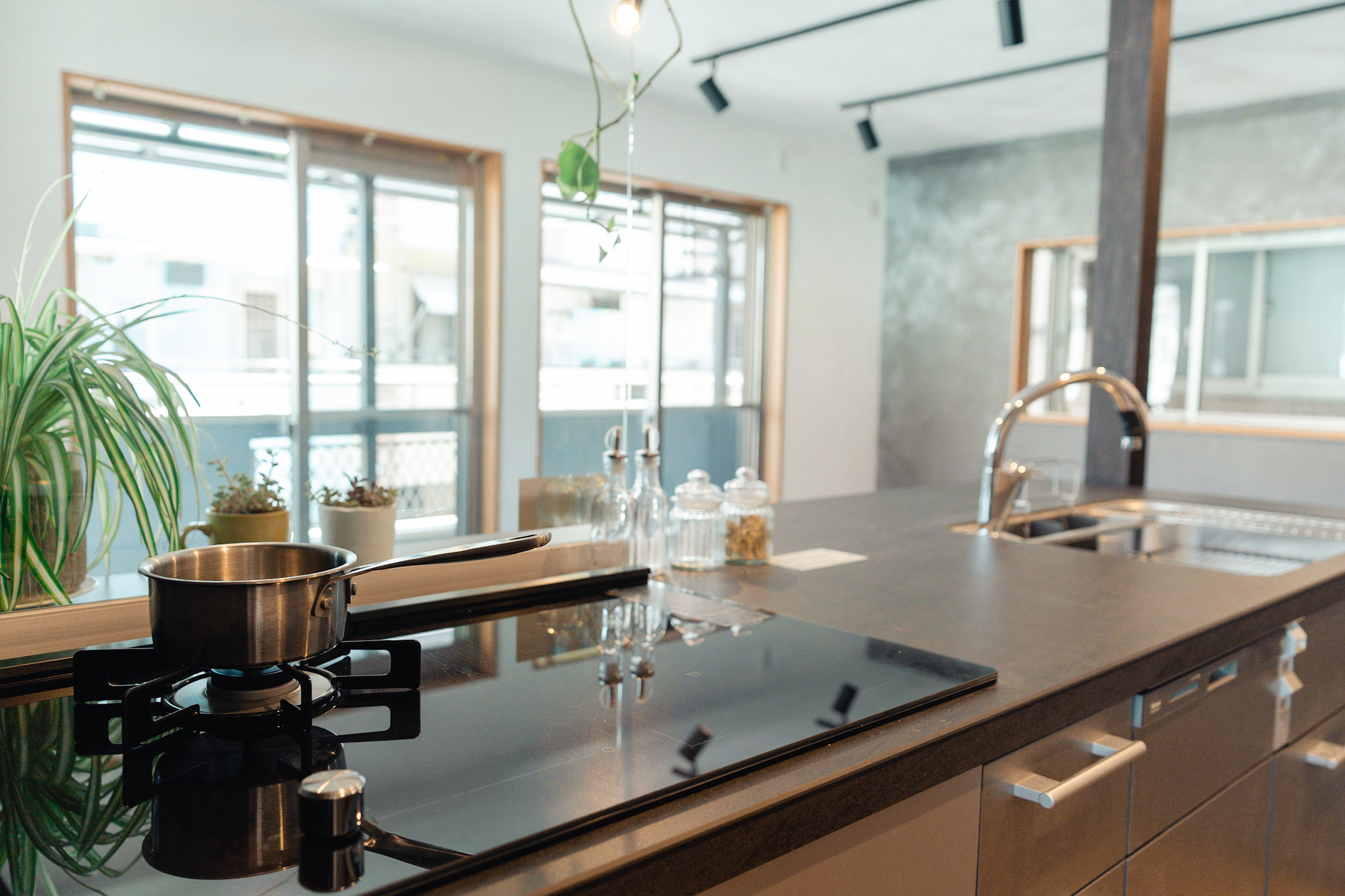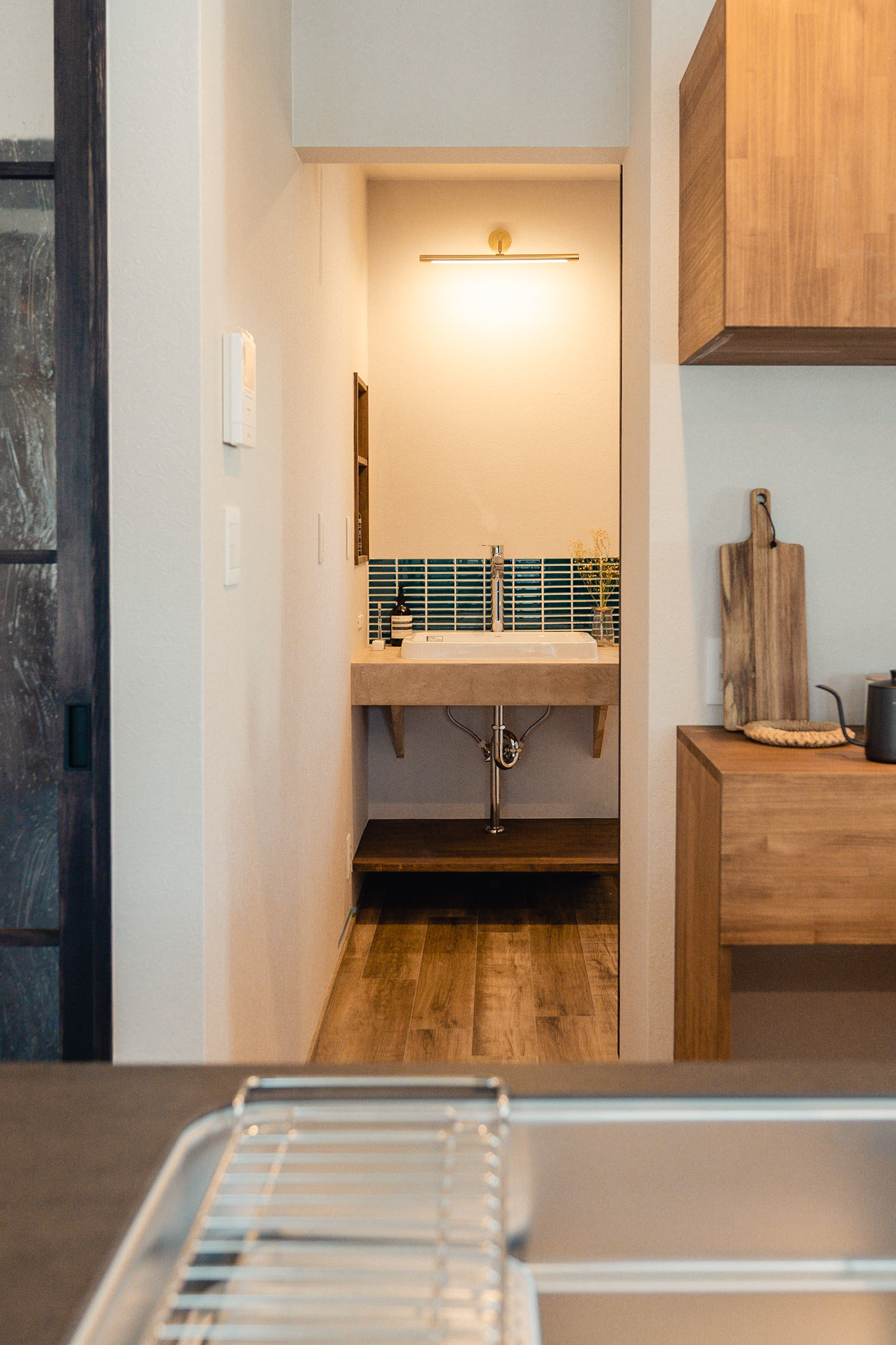 全体的なご予算の配分を考慮し、2Fについては出来るだけ元の間取りを活かしたリノベーションとしており、キッチンはもともと壁があった部分を取り除き、構造補強を行うことでリビングスペースとの一体感を感じられようにしました。2Fの壁・天井はお施主様ご自身で漆喰をDIYされ味のある仕上がりに。お施主様お気に入りの空間となりました。
