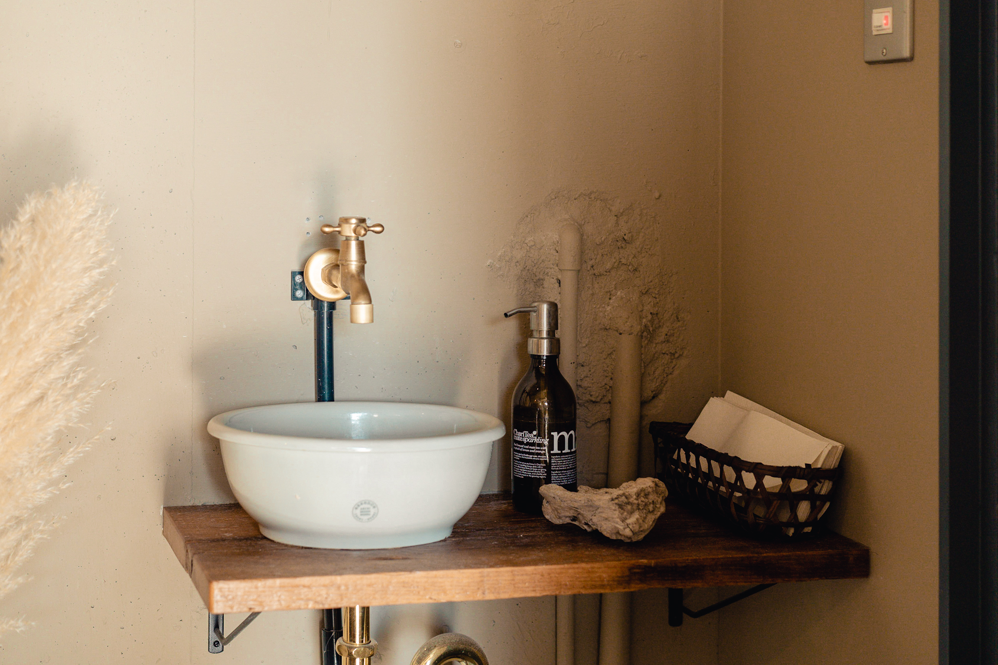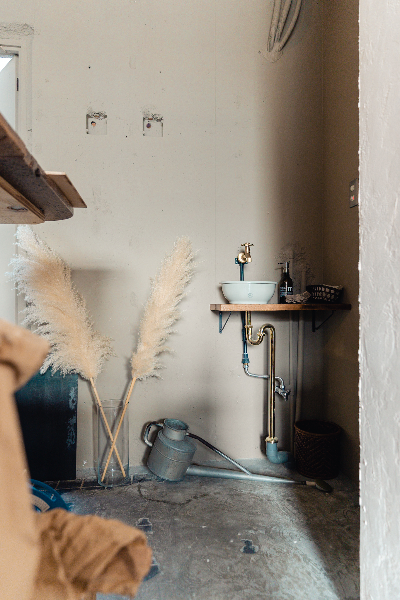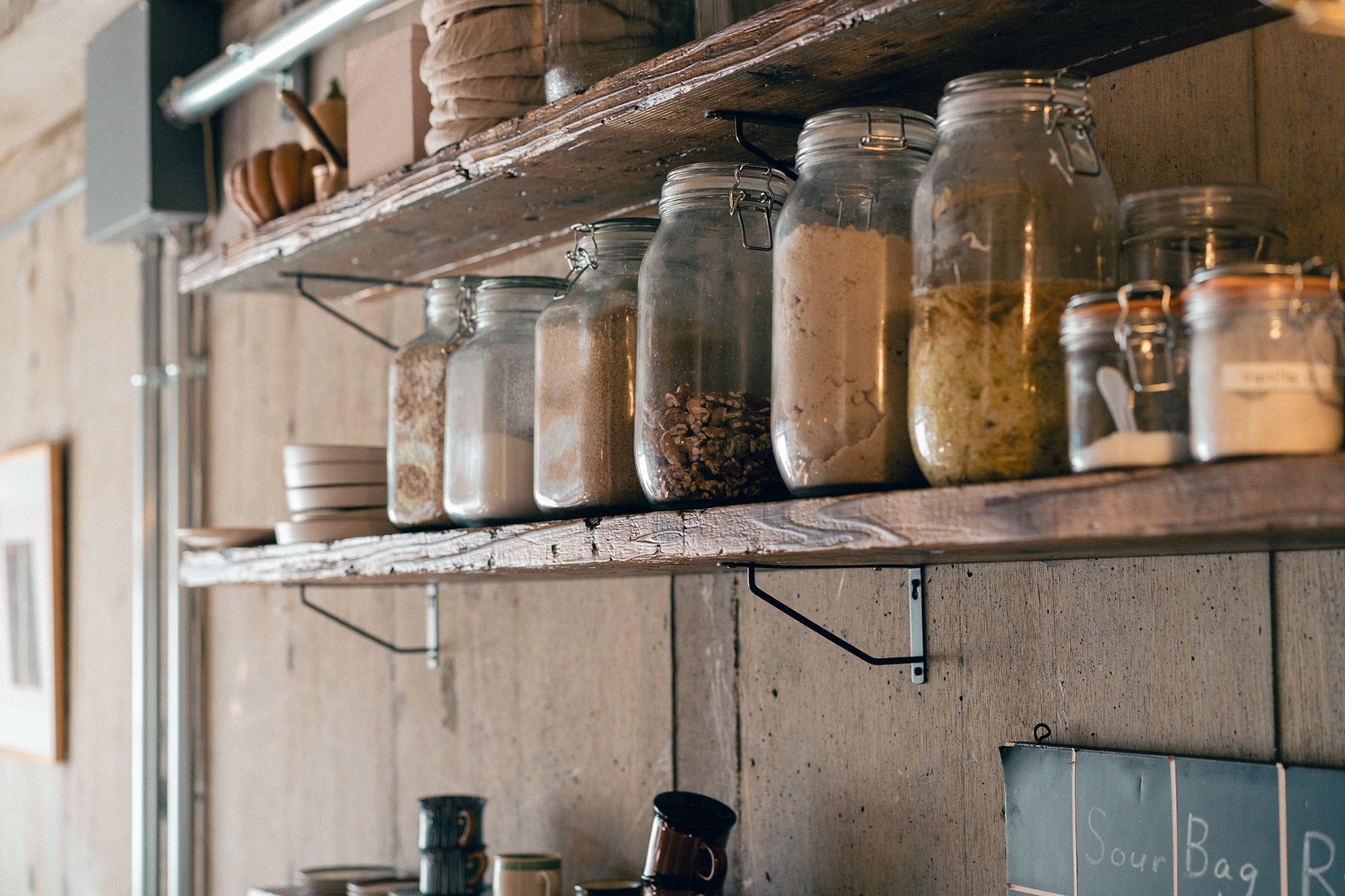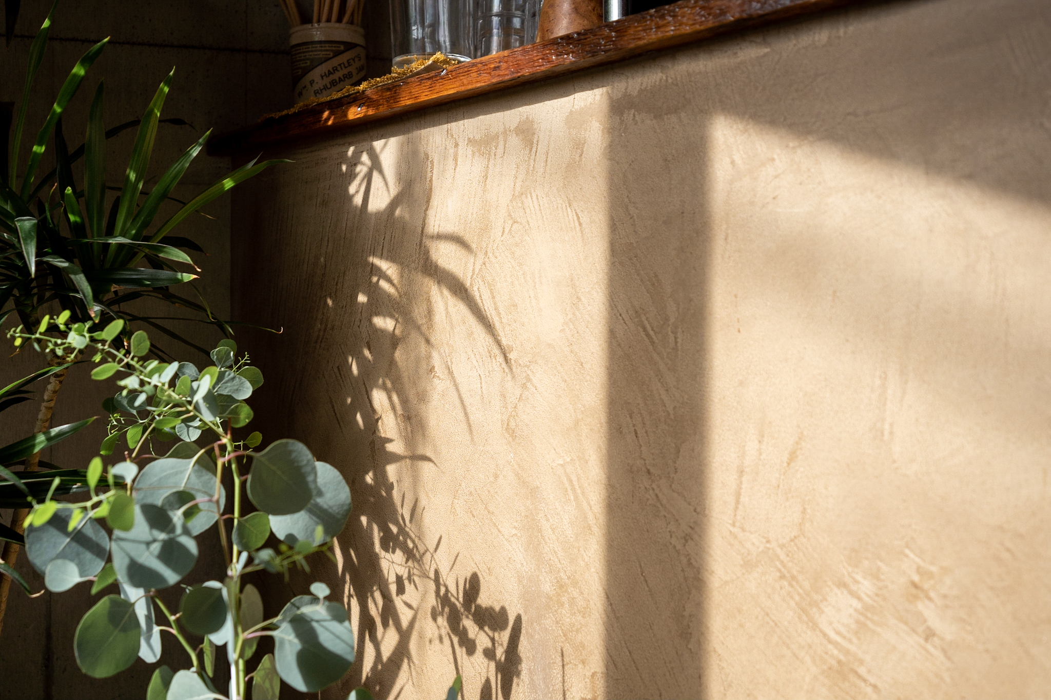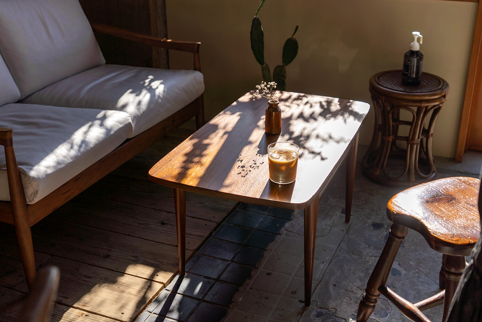 店内も出来るだけ既存のテクスチャを残し、活かすことが出来るように計画しました。床の既存タイルは古さが残り新しく作るのでは出せない風合いが残っていました。床のタイルとコンクリートは残しそれを引き立てるような古材を床のなかった部分に合わせています。