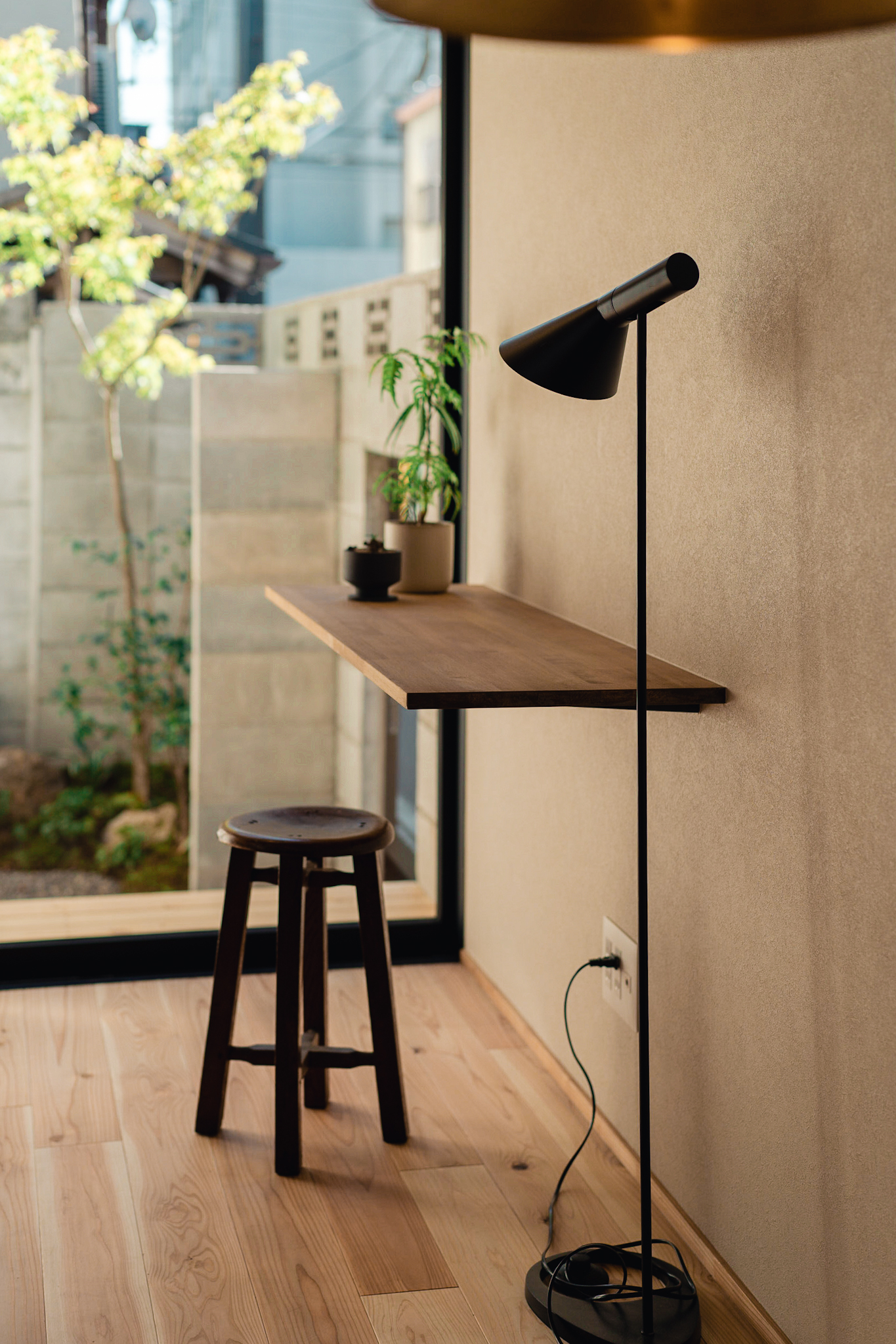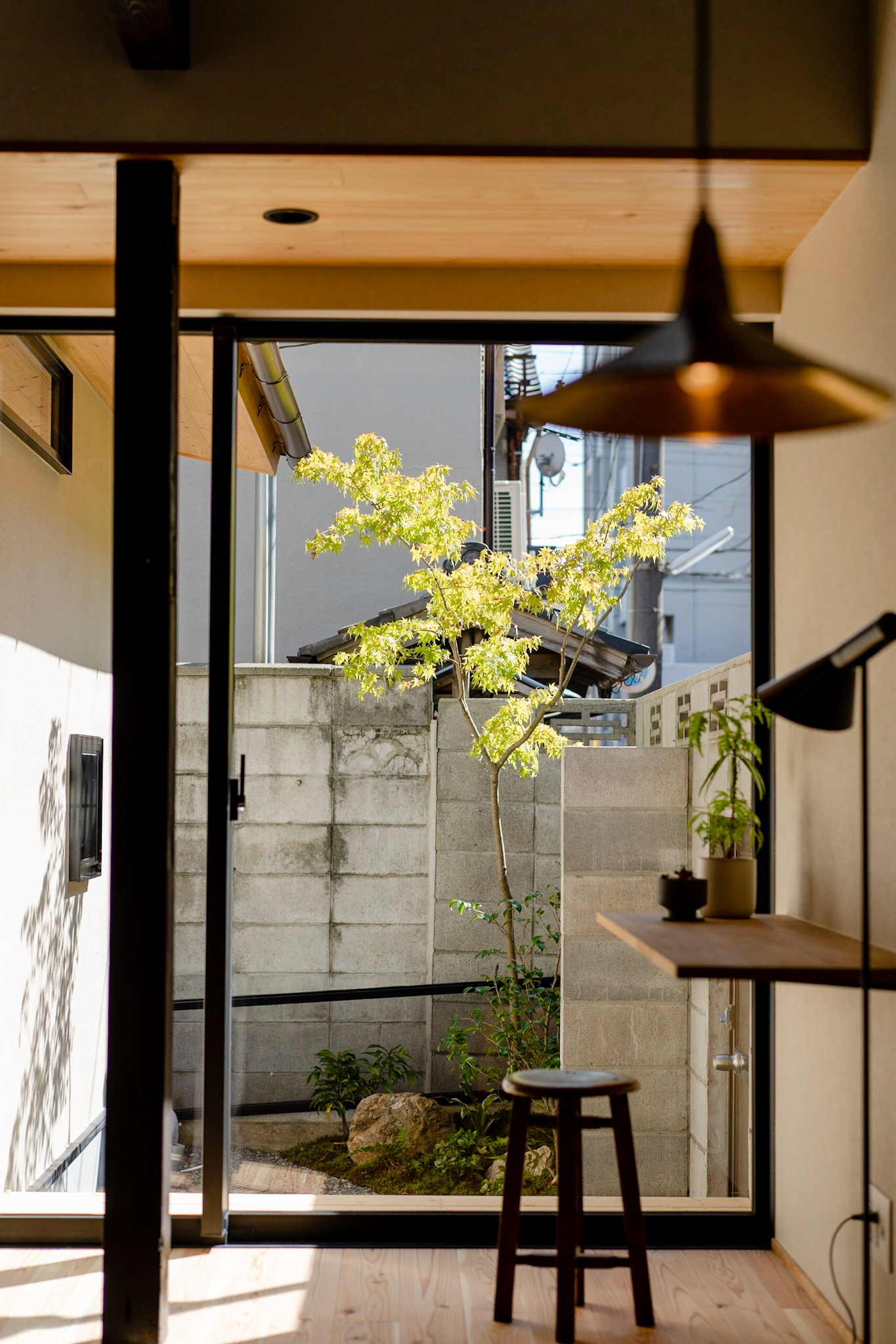 南側の窓から見える坪庭には、イロハモミジを植えて季節の移ろいを感じながらゆったりと過ごせる空間に。