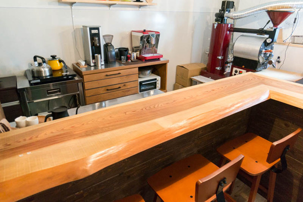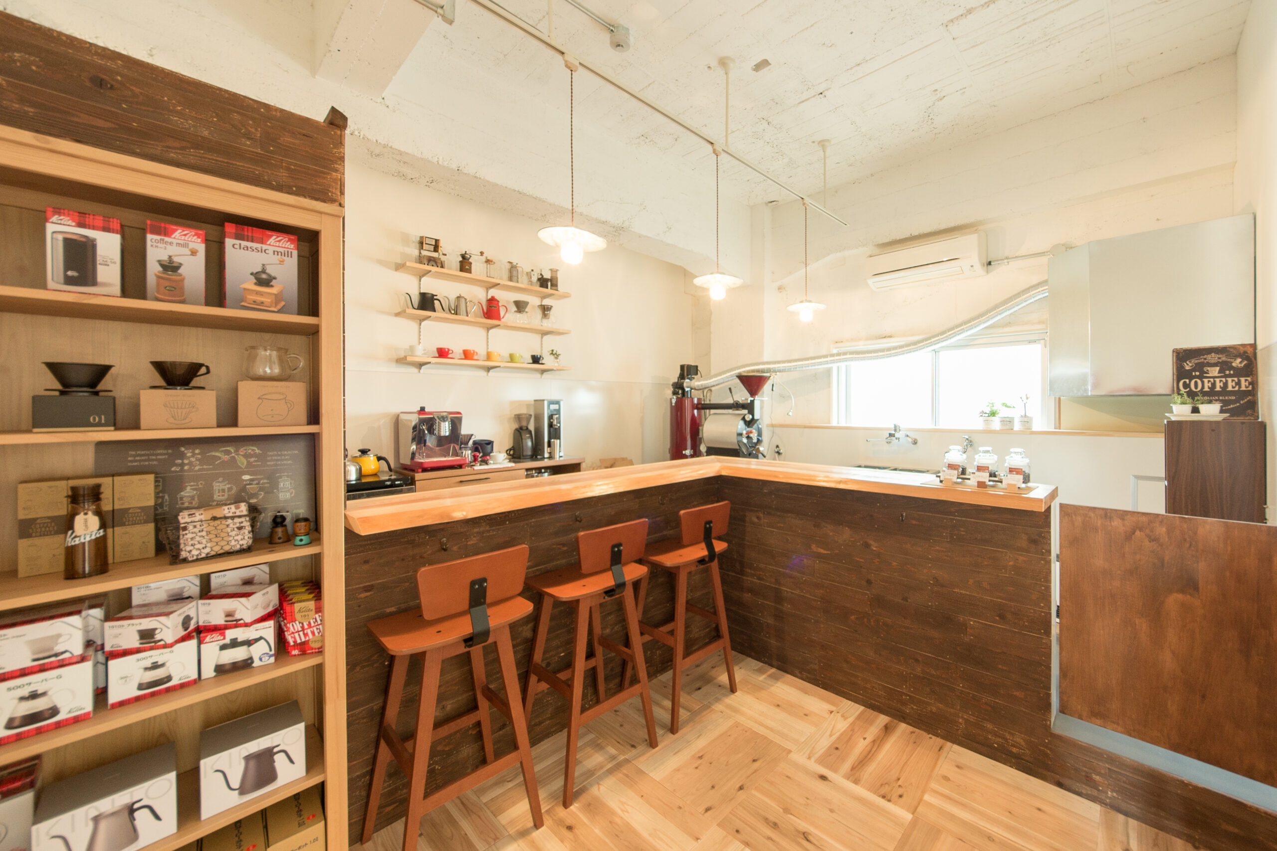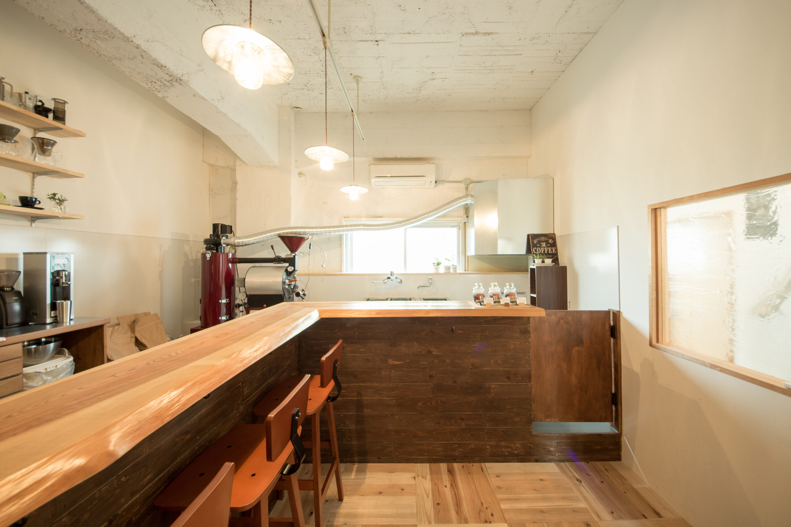弊社のお隣にオープンされた、コーヒーショップ『KAORU COFFEE ROASTERY』。コーヒーの良さが伝わるアンティークな店のイメージでとご依頼を受けました。カウンターは奈良産の杉の一枚板を、床は岡山の杉のパネルを使用、壁は施主様たちでDIYをして塗ってもらい、より一層愛着も沸いたと言って頂きました。お隣からは、いつもコーヒーのいい香りと共にお客様との笑い声ものった様子が身近で伺えて嬉しいかぎりです。