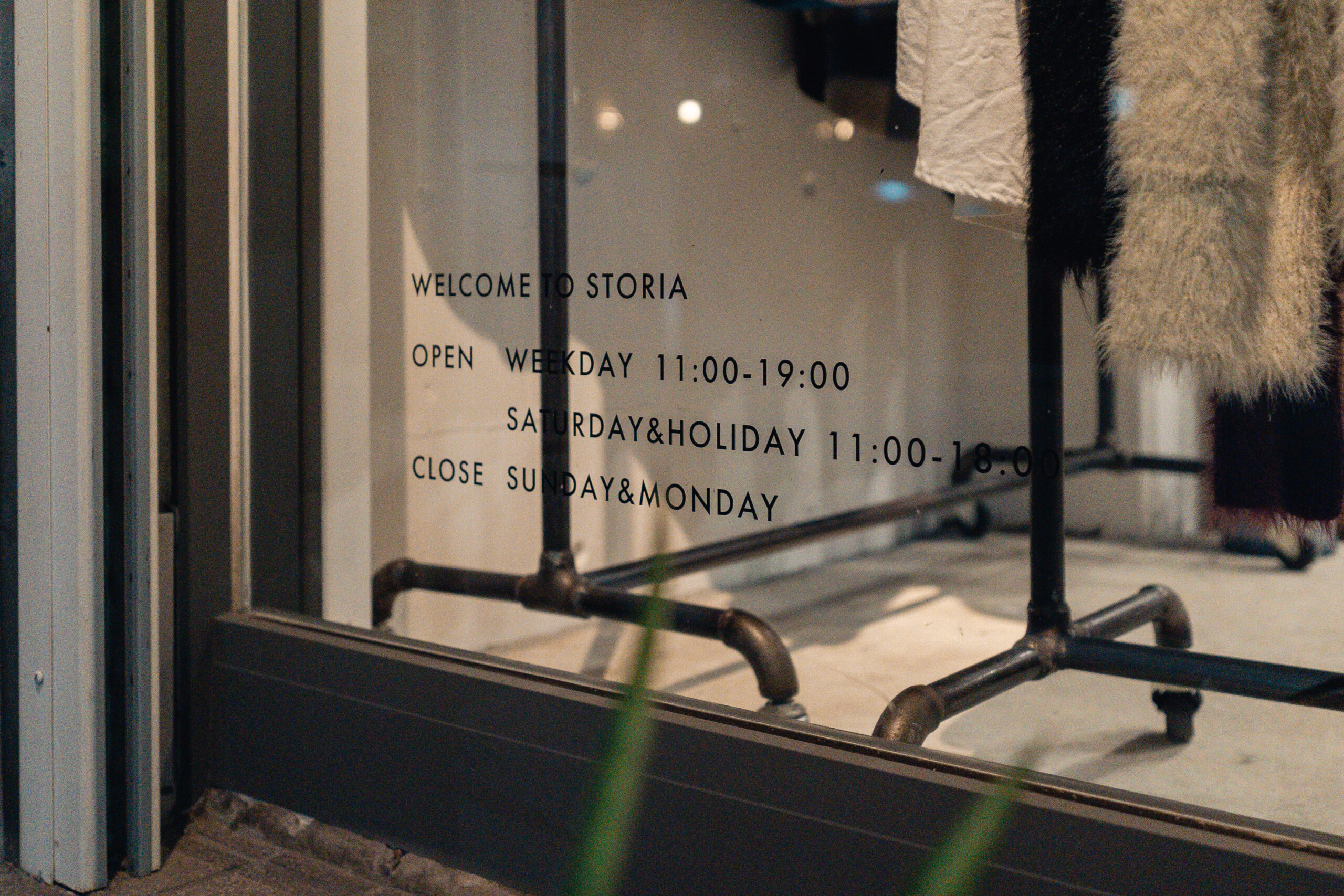 店舗デザイン移転リニューアルオープンを機に、店舗リノベーションをされたstoriaさん。大人の女性をターゲットとしたオシャレな洋服をセレクトされています。そのイメージに合う内装工事、ロゴデザインのご依頼をいただきました。