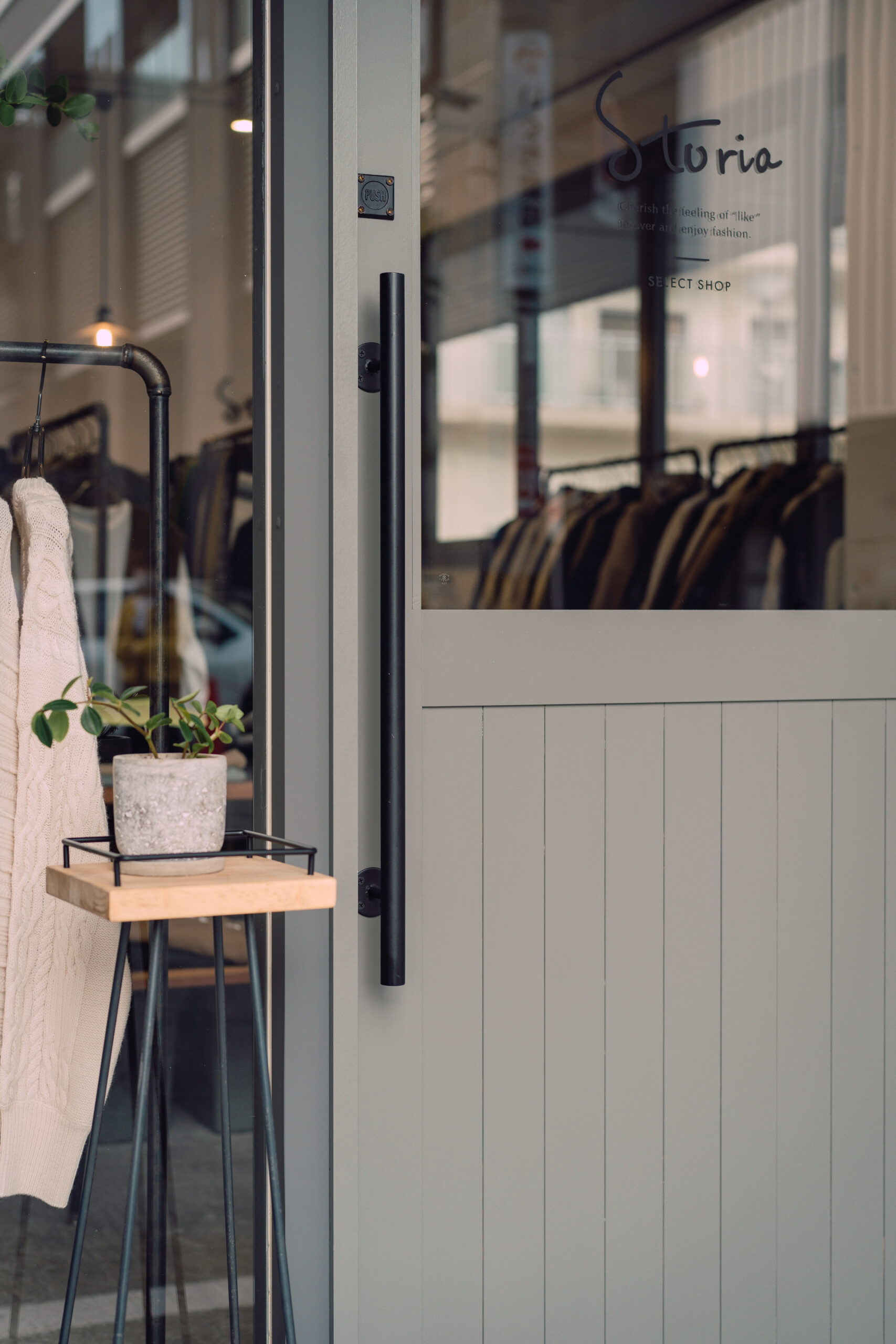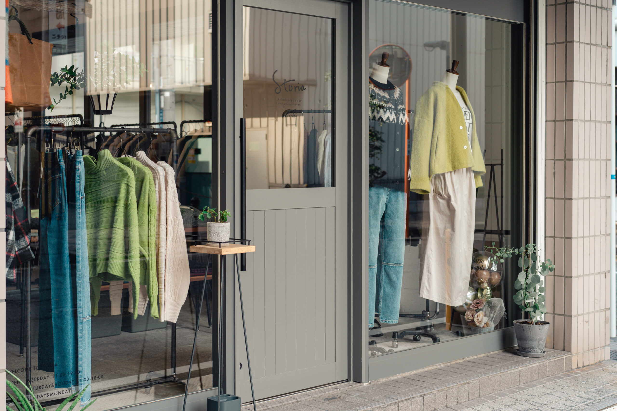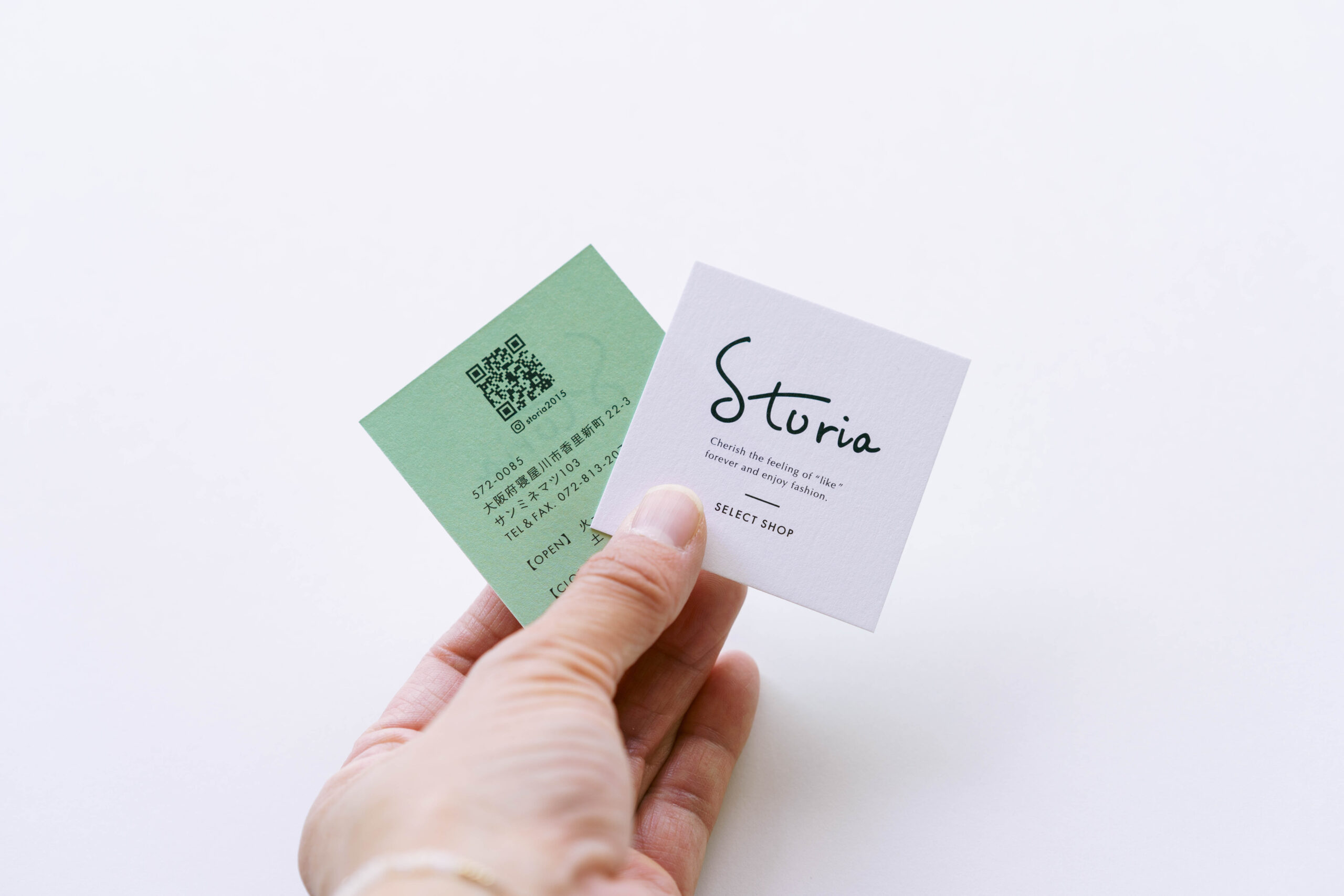 大人の女性をターゲットとしたオシャレな洋服を取り扱われていることを伺い、女性らしさを表現できるような手書きの文字で作成しました。Sとtは繋がるようなデザインとし、お客様との繋がりを大事にされているオーナー様の想いを入れ込んでいます。