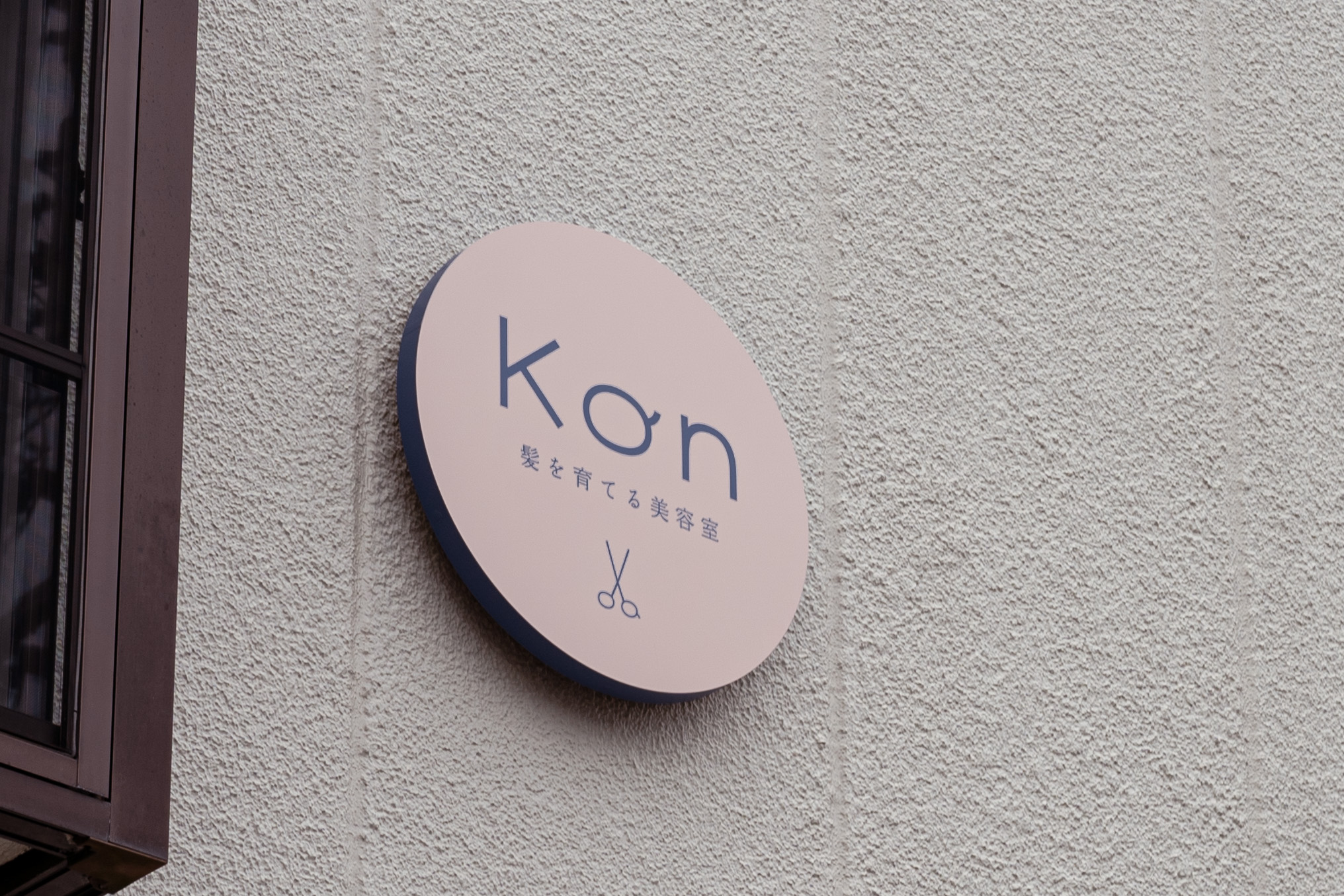 ロゴは、kon のOの部分を種に見立て種から育つ様子を表現したものにしました。カラーはオーナー様からのご要望の優しいベージュと紺色の2色を使用しています。