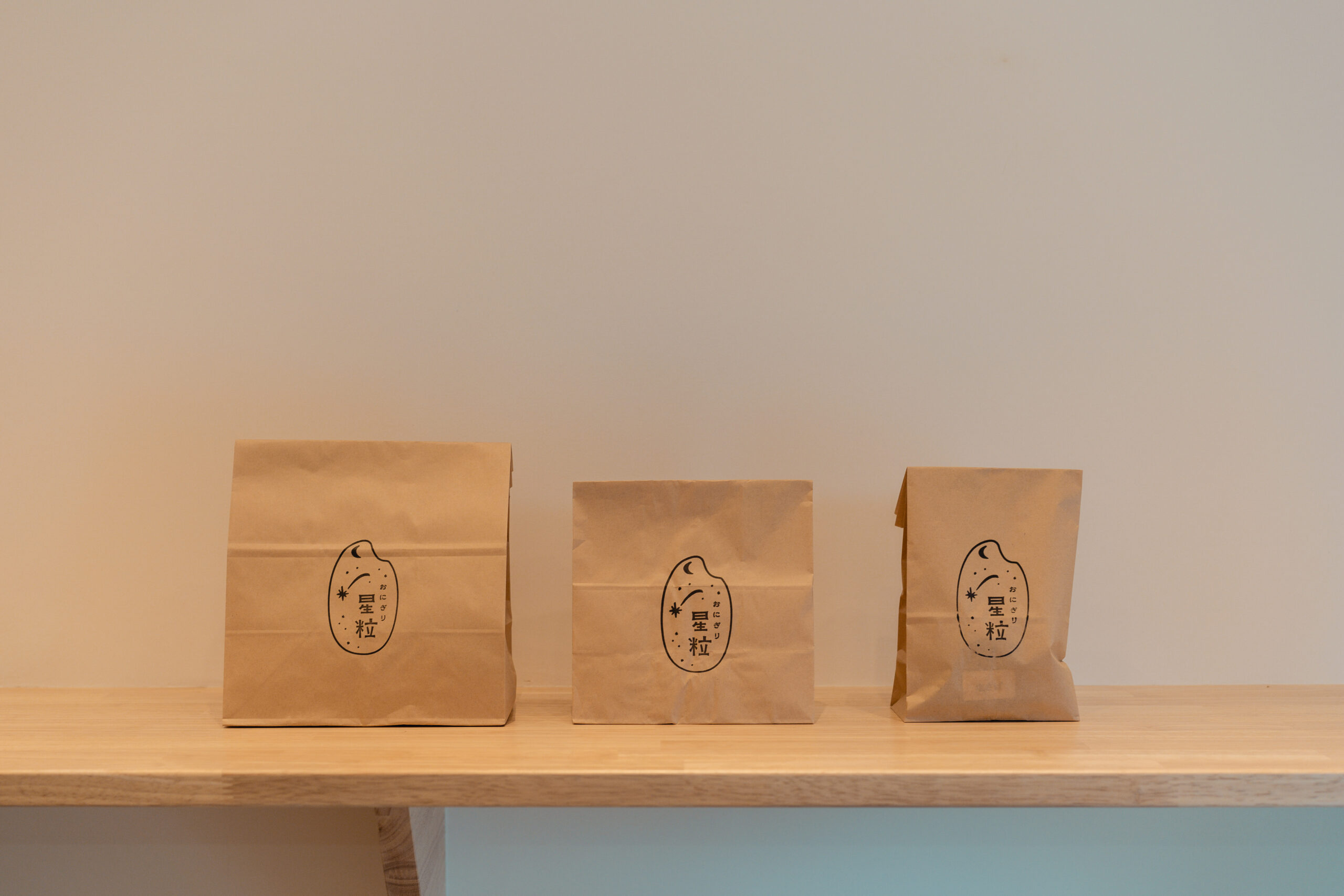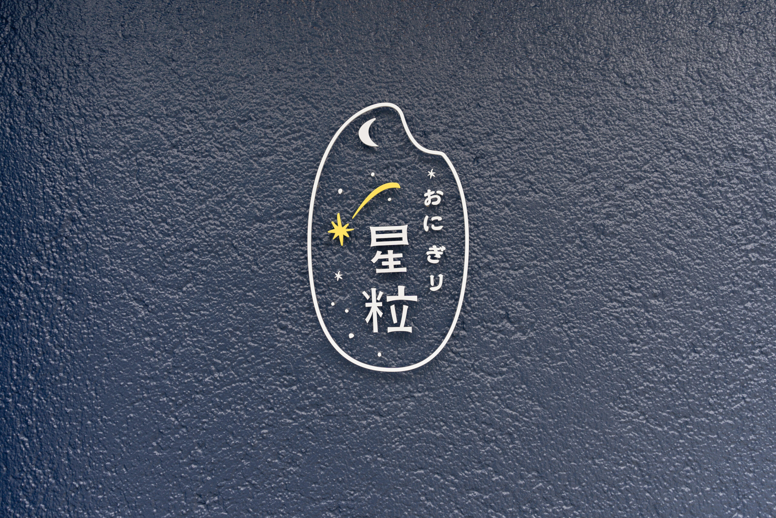 ロゴデザインは、オーナー様から「日々忙しく過ごされてるお客様へ愛情を感じられる美味しいおにぎりを届けたい」という想いを伺い、米粒のシルエット中にお母さんがお弁当に海苔で作った文字のように少しバランスを崩した星粒の文字をデザインしました。
