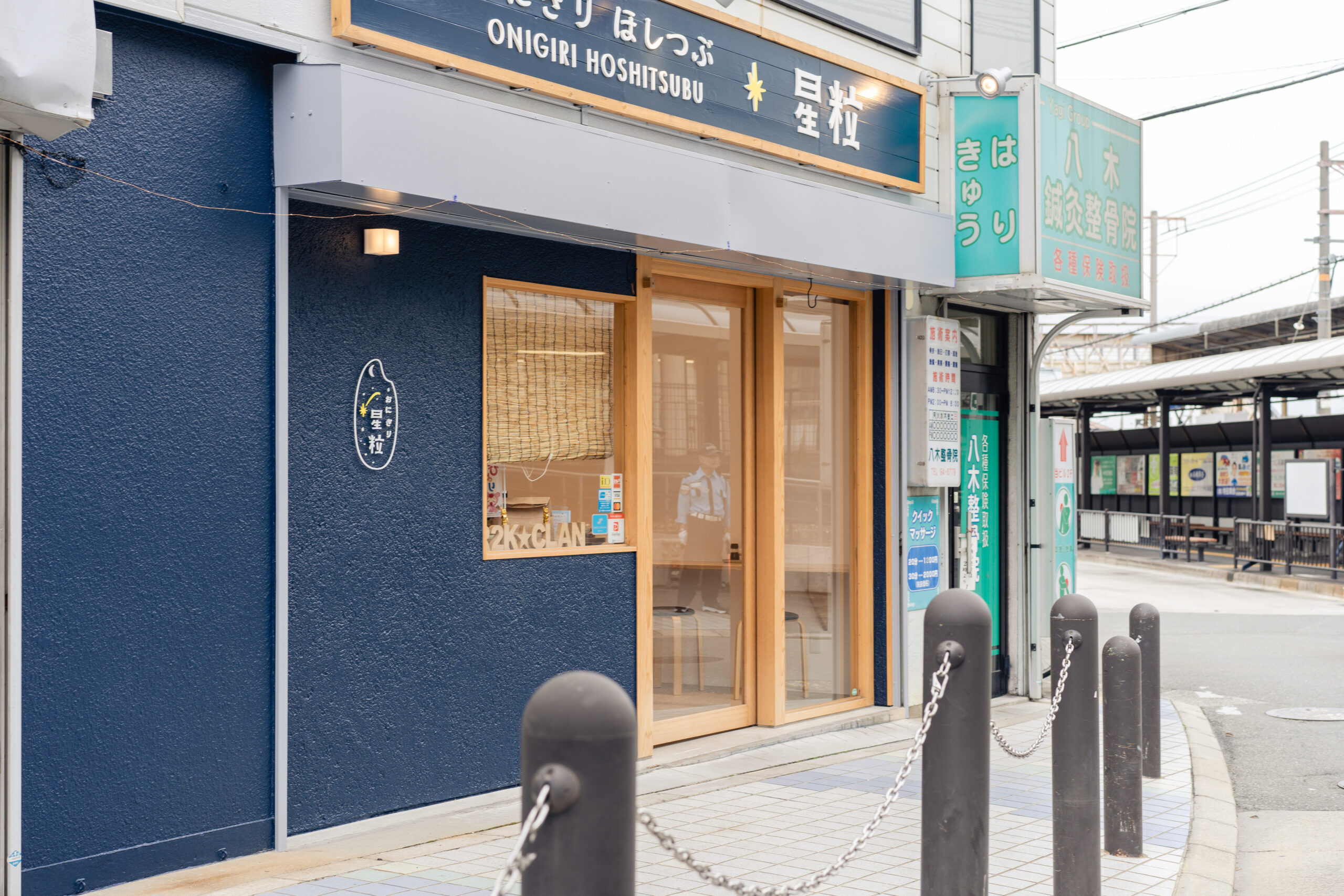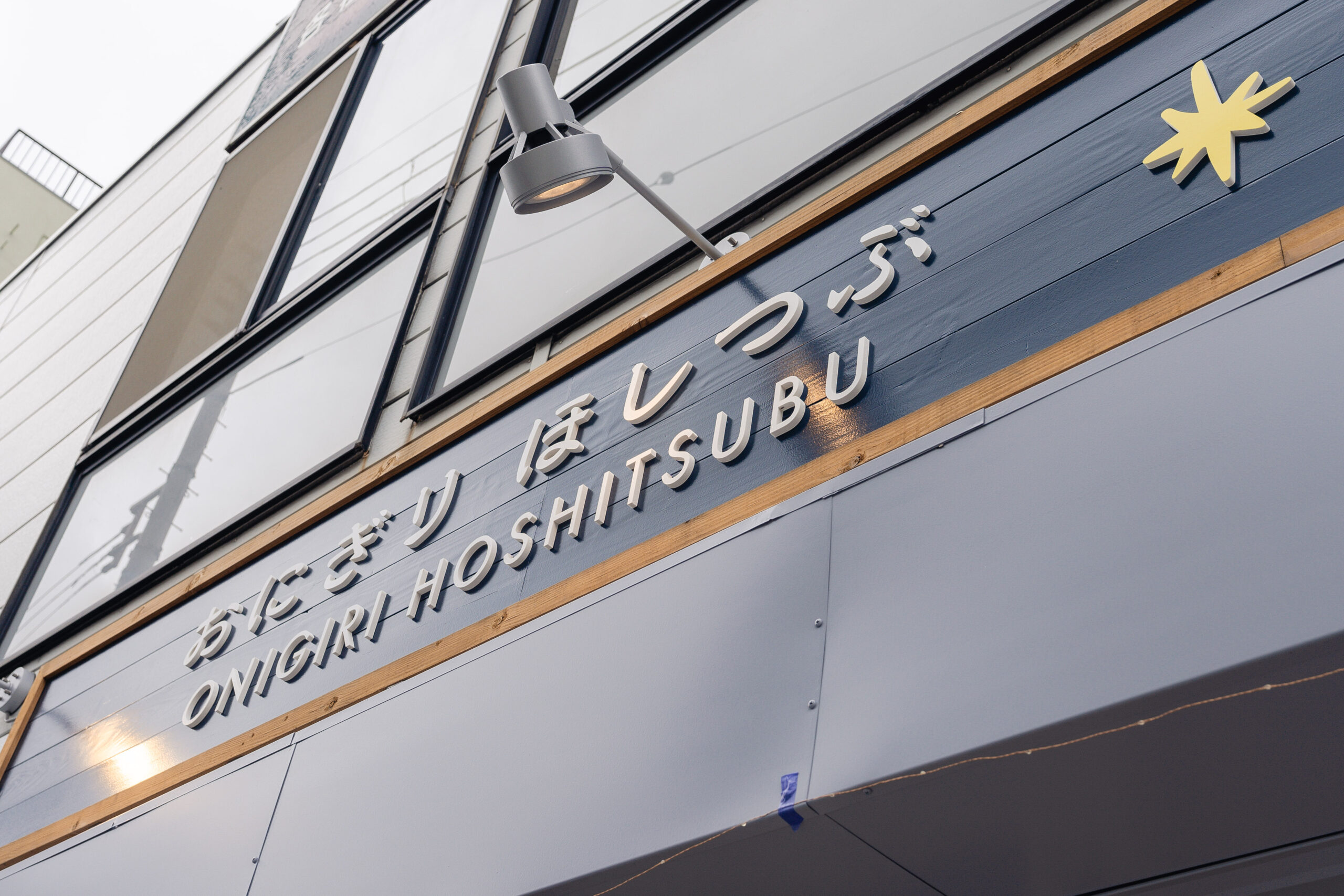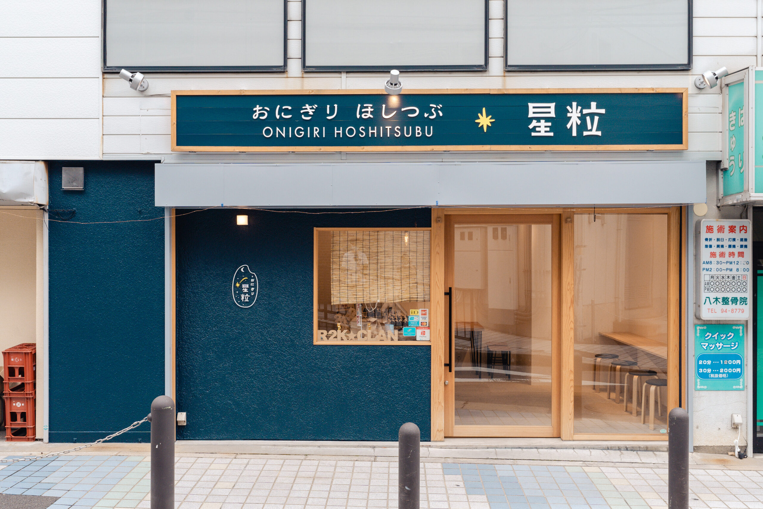 店舗は新しくおにぎり屋さんとしてお客様から認知していただけるようにと考慮し、店名の星粒の意味合いも含め夜空をイメージしたミッドナイトカラーに外部を塗装しています。