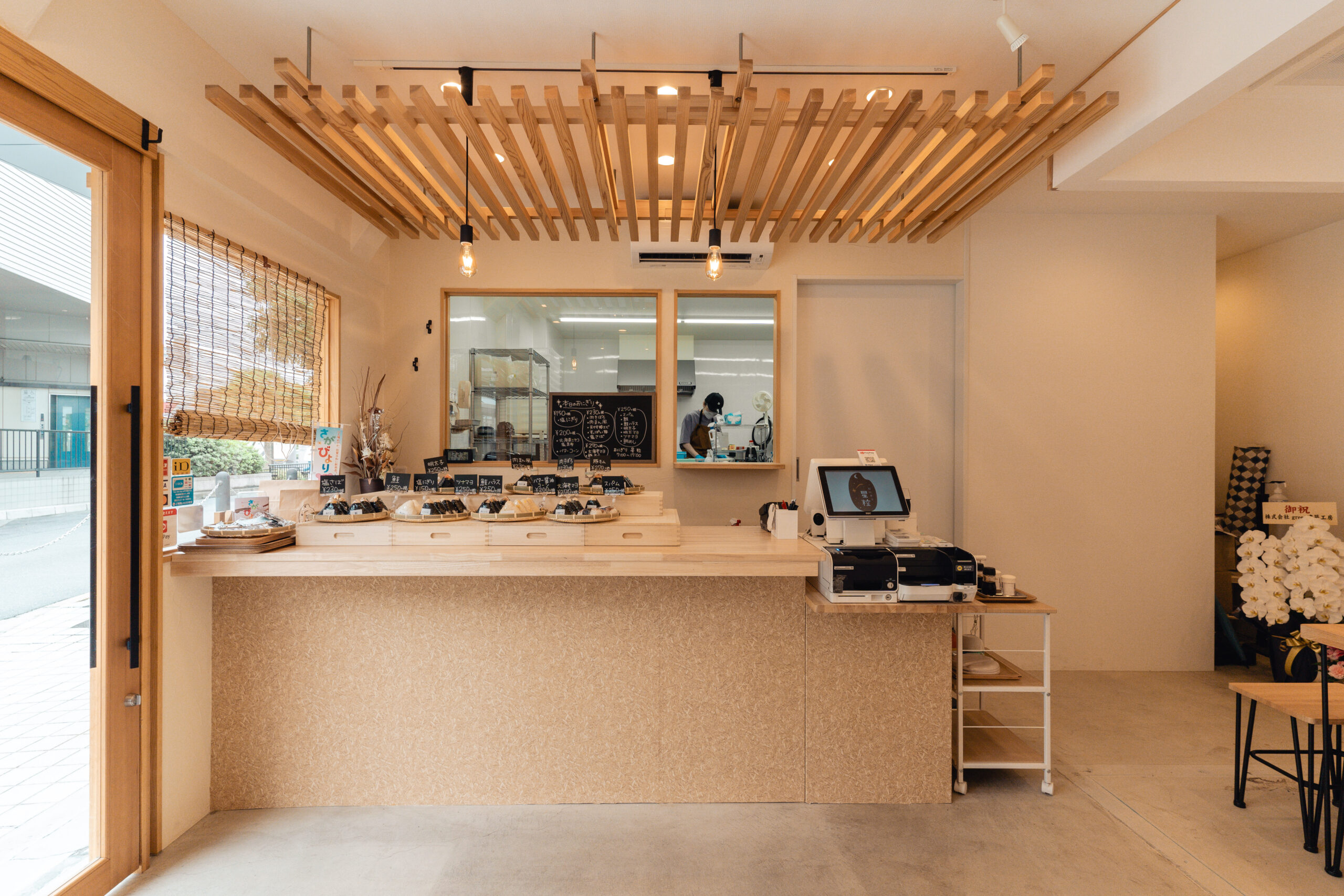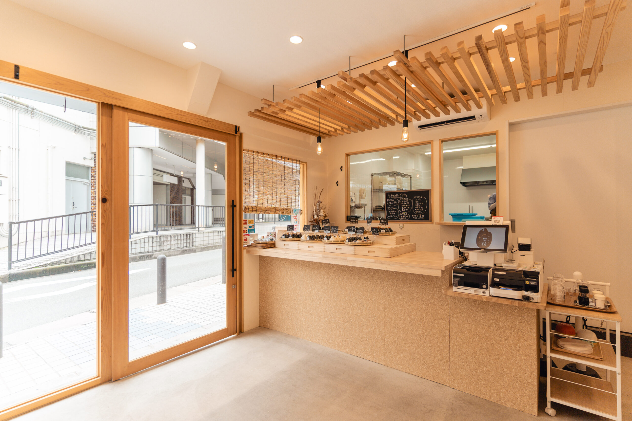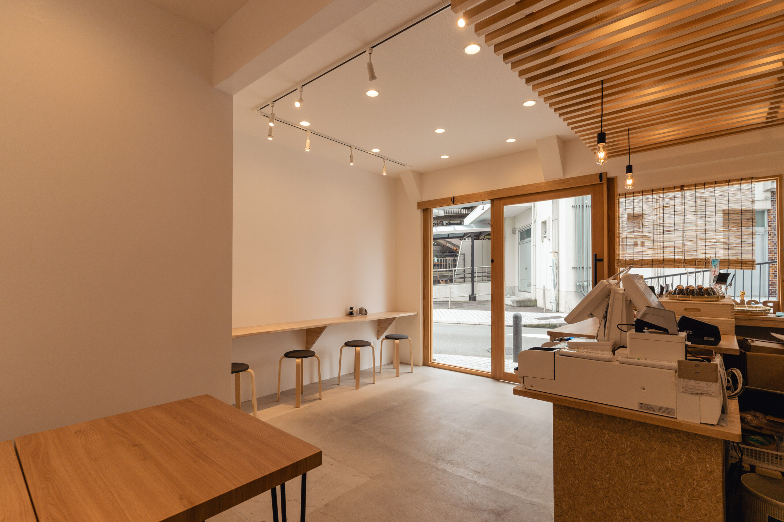 元々和風の店舗で綺麗な内装であったため、既存で使用できるカウンターや看板などは再利用して活用しました。また店内はイートインスペースを設けたいとのご要望で、倉庫として利用していた部屋の壁を取払い店内を広げてスペースを確保しました。