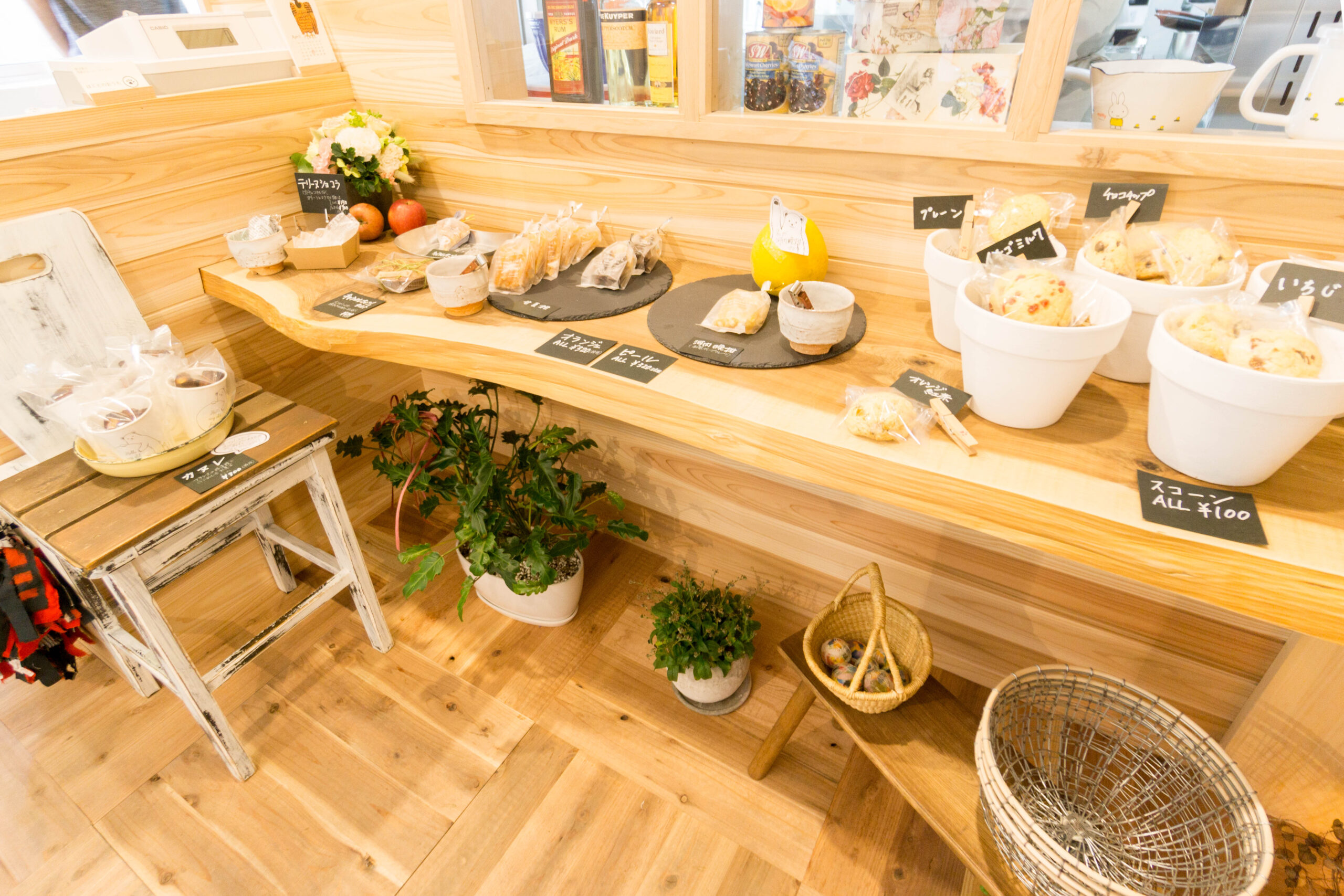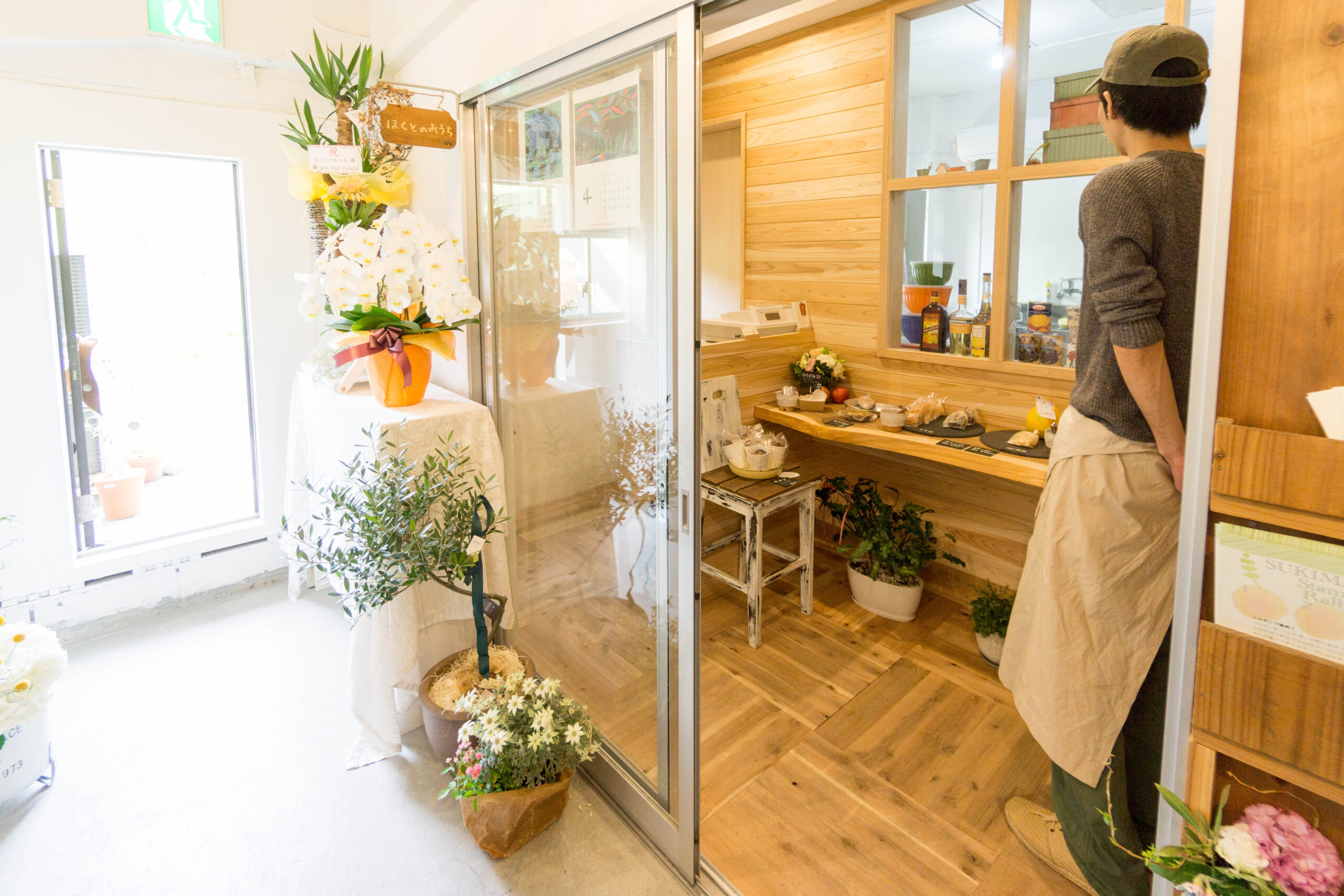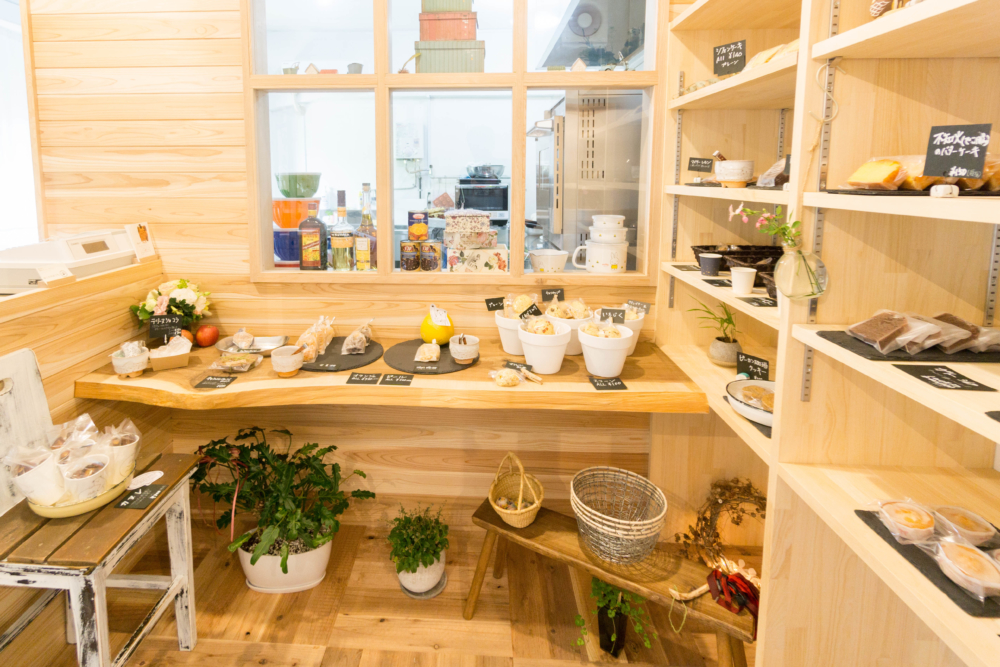弊社の下の階にオープンされた、洋菓子屋さん『ほくとのおうち』。最初にお菓子を持って来ていただいて、「このお菓子のイメージに合うお店にしたい」とご依頼を受けました。弊社の得意な自然素材をふんだんに使ったお店のイメージが合いそうだなと思い、提案しました。調理場からチラッとお客様の様子も見える木枠の窓もアクセントに。小物も可愛く飾って頂き、ナチュラルなイメージのお店となりました。そして、お菓子も美味しいですよ!特に好きなのは、写真にも載っているキャラメルナッツタルトです。ぜひ、食べてみてください。