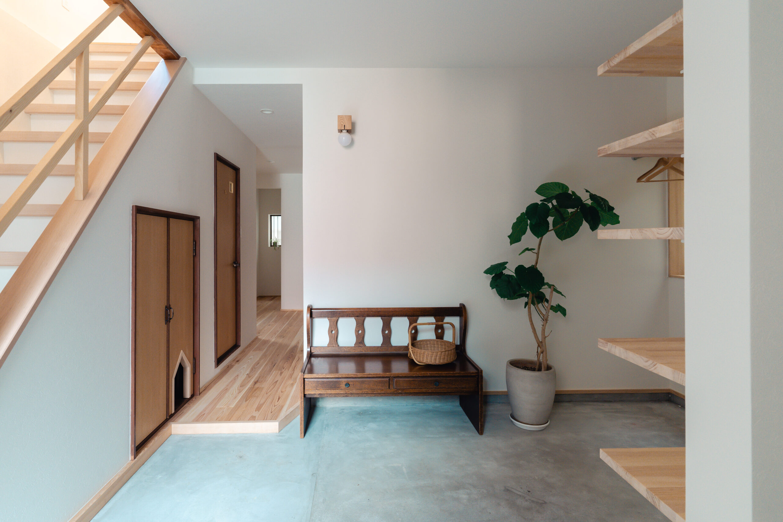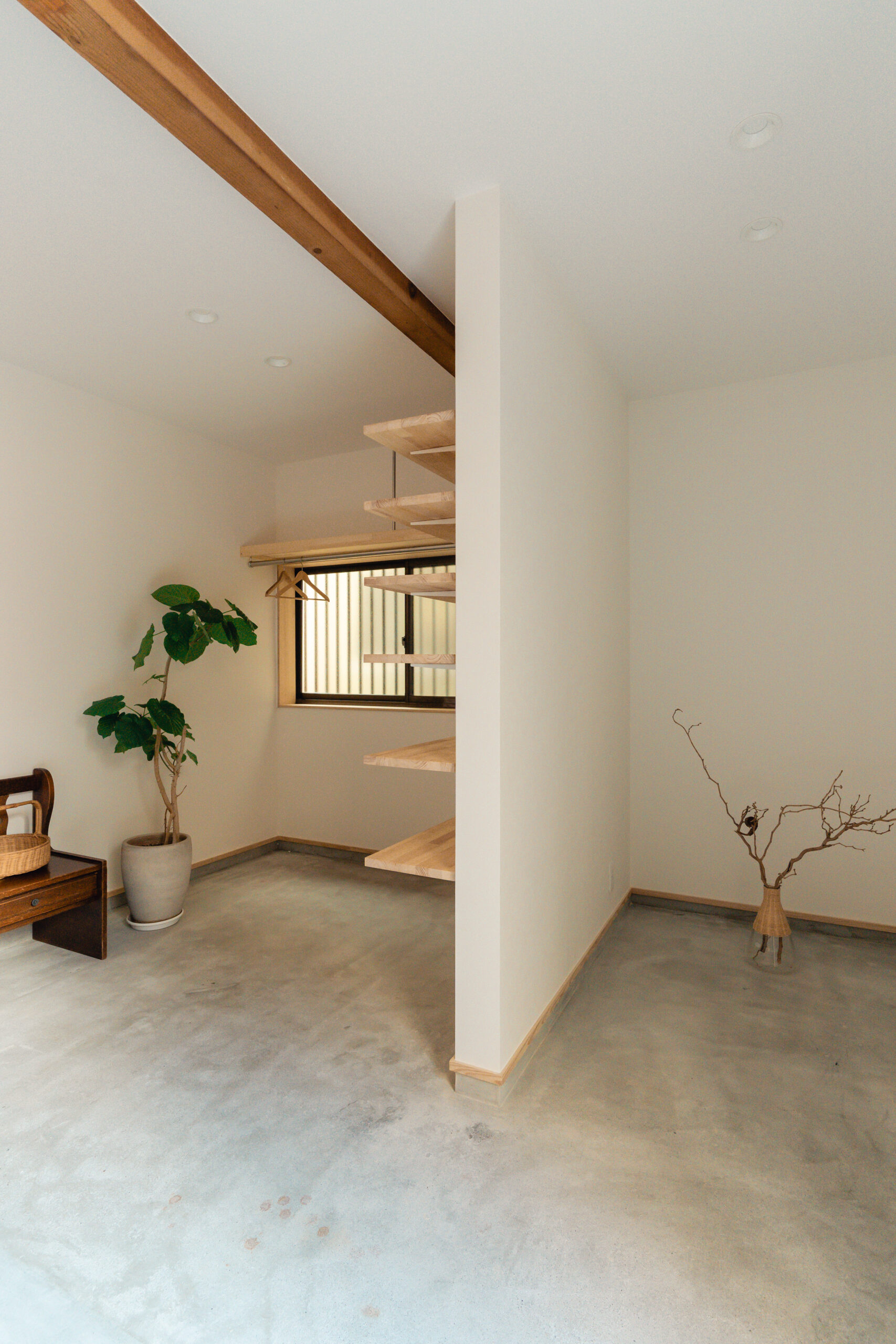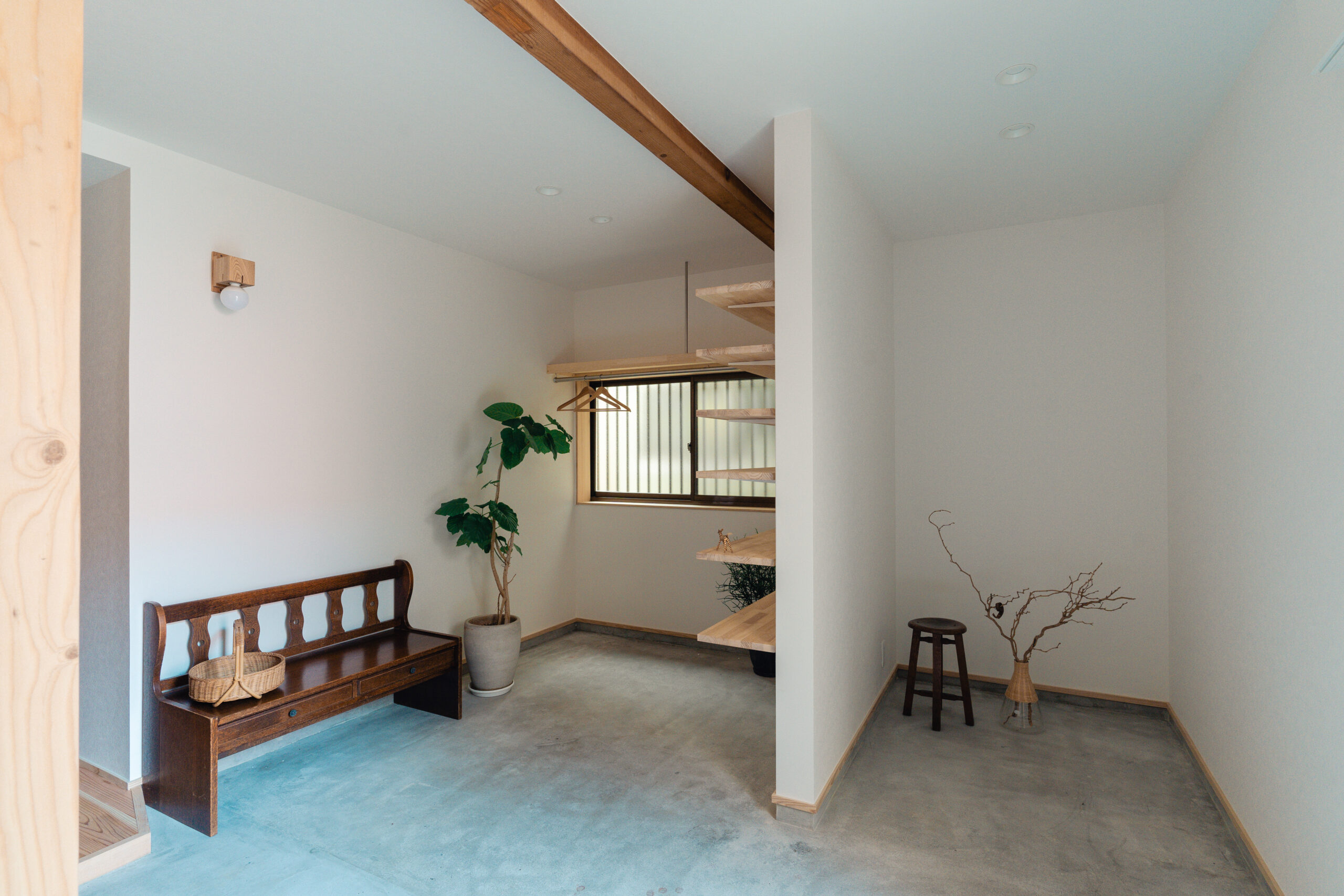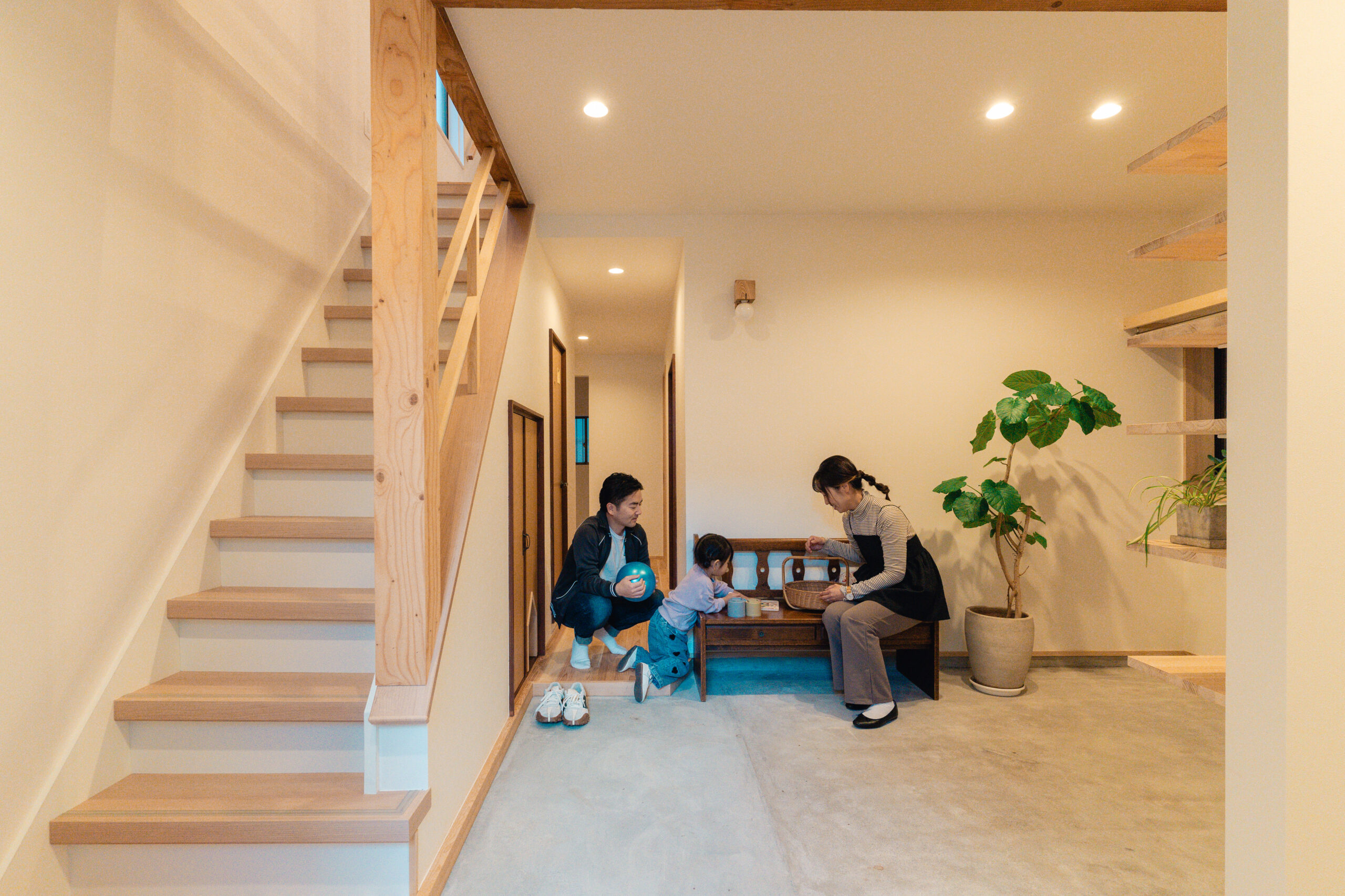 1階は家の顔とも言える大きな土間と玄関があります。土間は広く、家族や友人が気軽に立ち寄れる空間として。また、玄関を入ってすぐにある納戸は、収納スペースとしての役割を果たし、家全体のものを集約出来ます。さらに、一階にはご主人の趣味である釣り道具の部屋も設けました。大切な趣味を思う存分楽しめるよう、家族との調和を保ちながら個々のライフスタイルも楽しめるように計画しています。