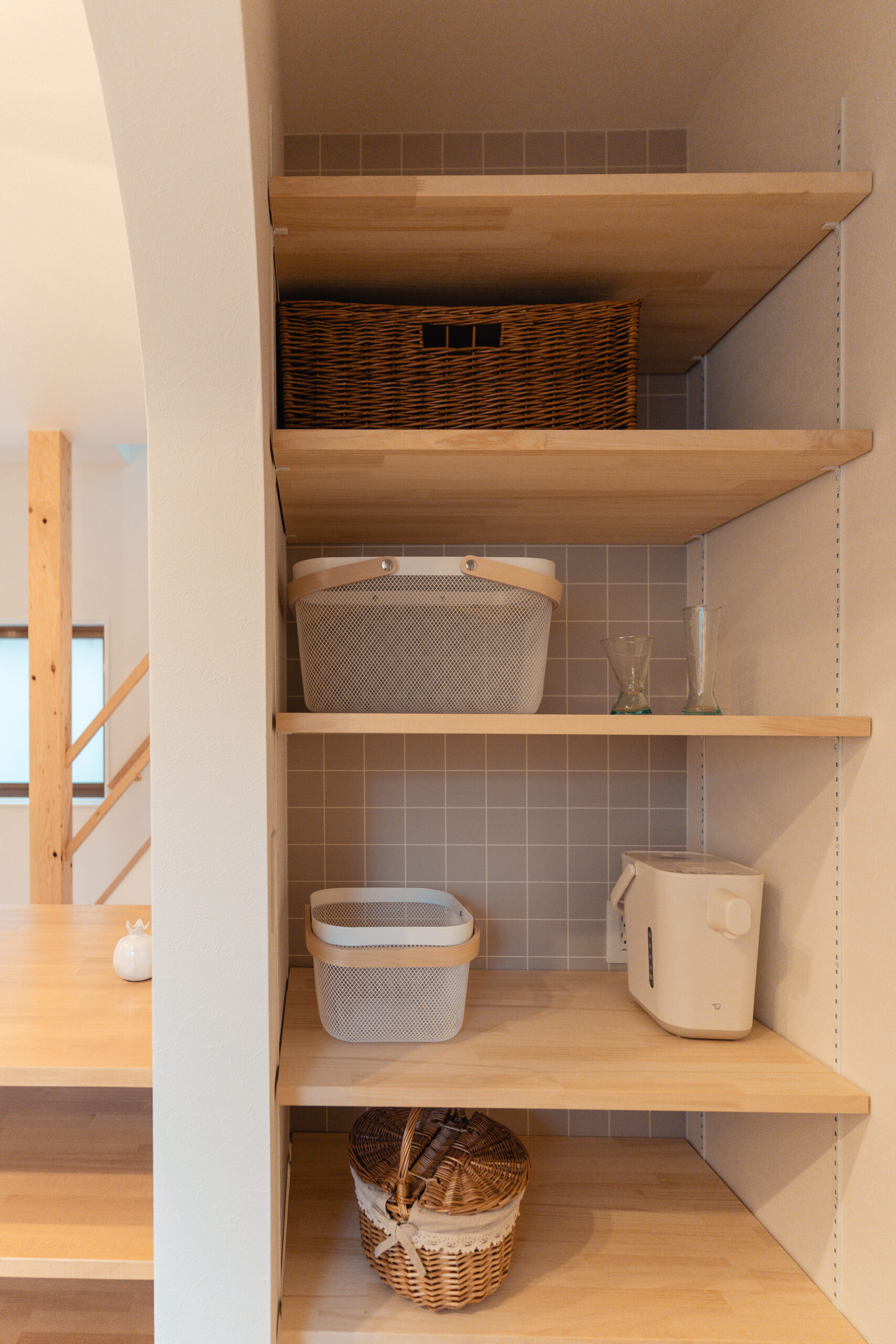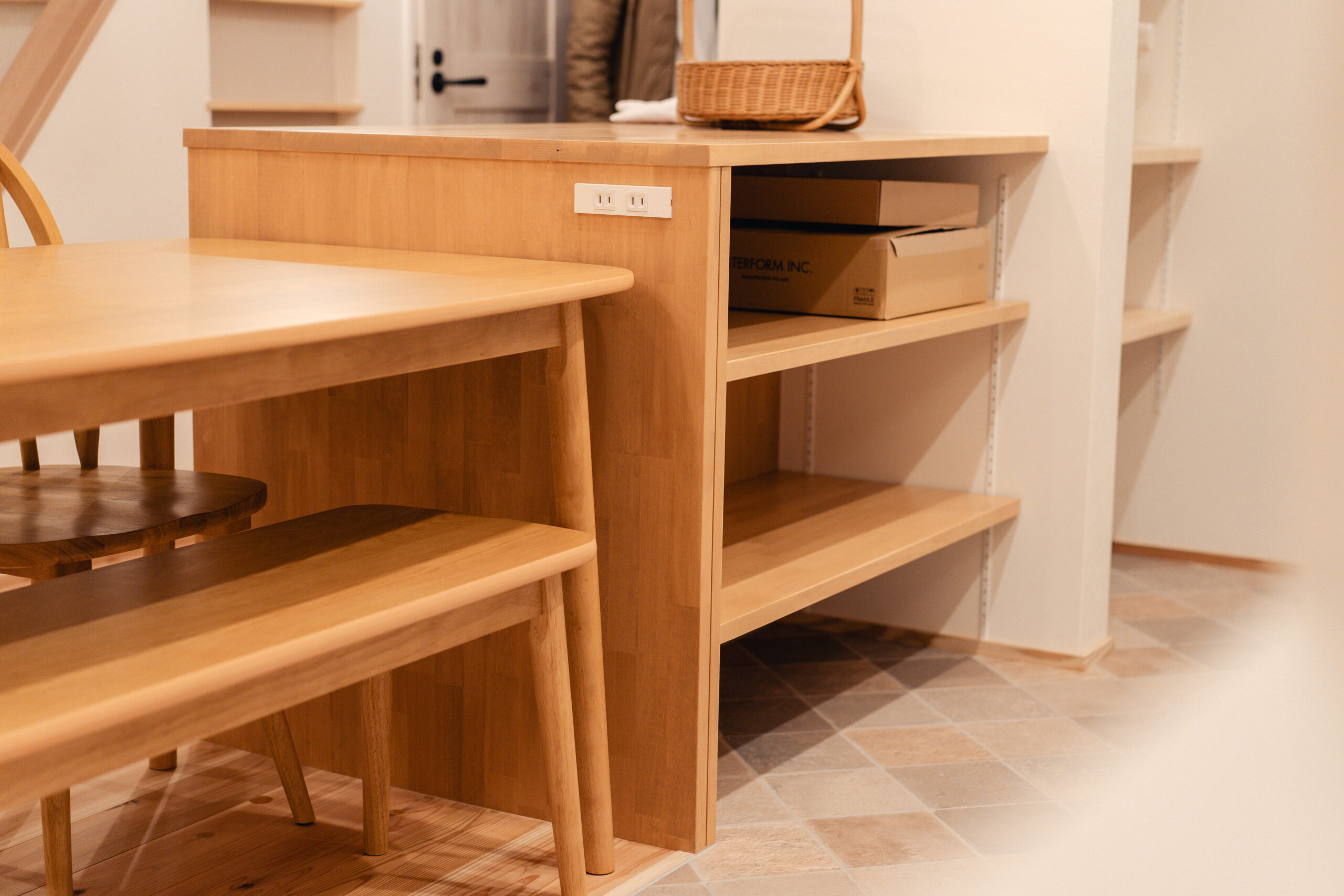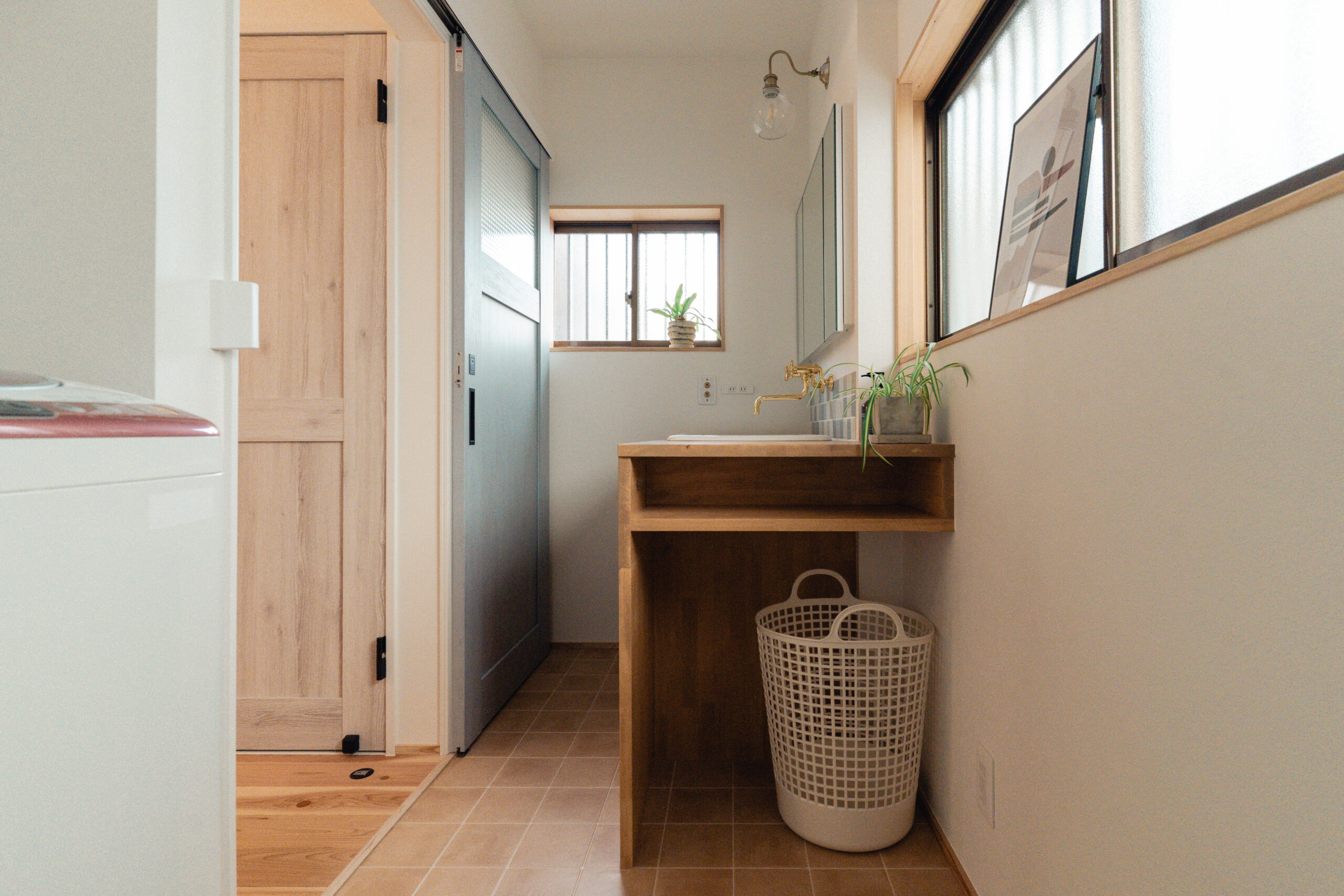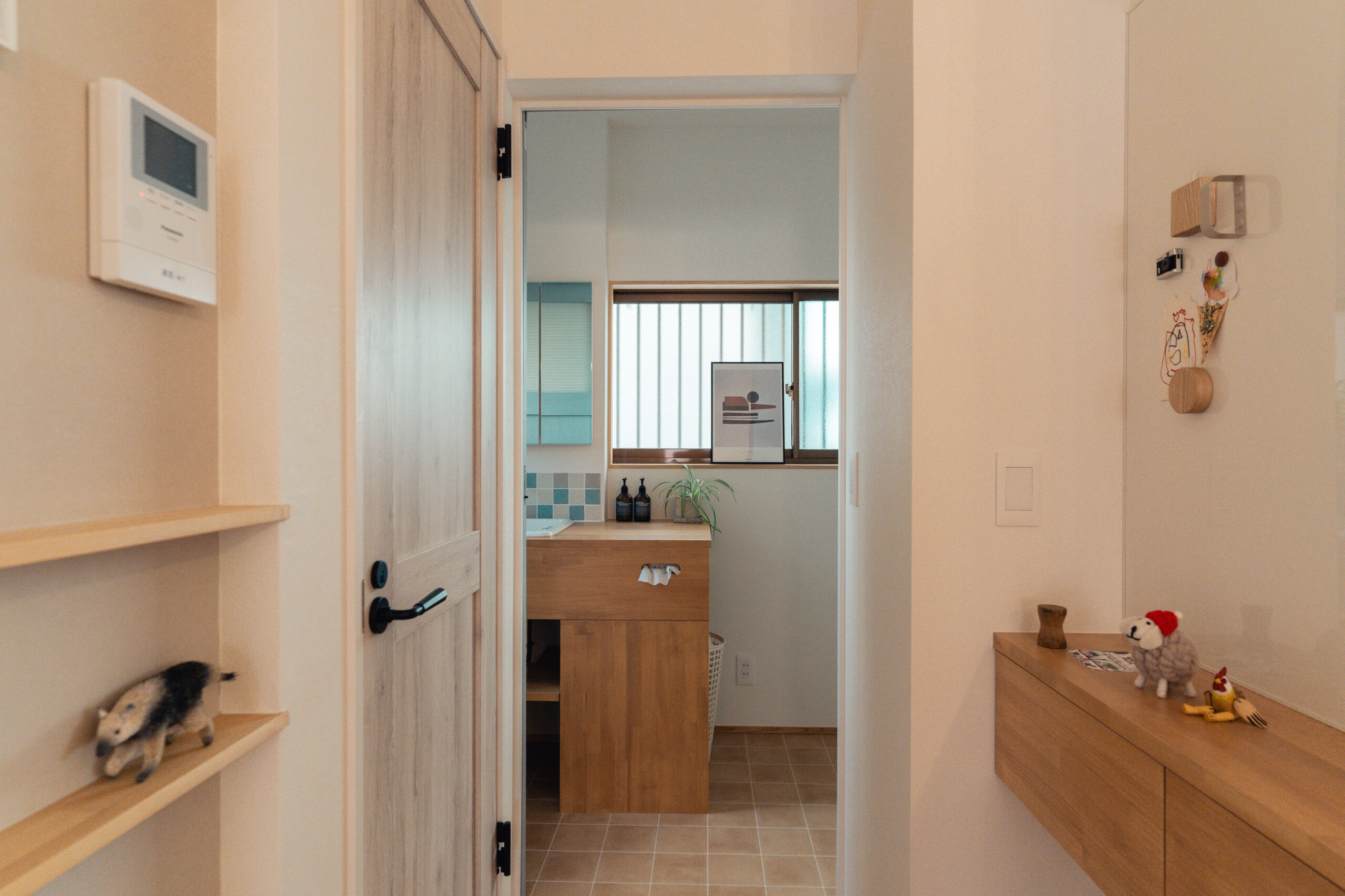 1階は家の顔とも言える大きな土間と玄関があります。土間は広く、家族や友人が気軽に立ち寄れる空間として。また、玄関を入ってすぐにある納戸は、収納スペースとしての役割を果たし、家全体のものを集約出来ます。さらに、一階にはご主人の趣味である釣り道具の部屋も設けました。大切な趣味を思う存分楽しめるよう、家族との調和を保ちながら個々のライフスタイルも楽しめるように計画しています。