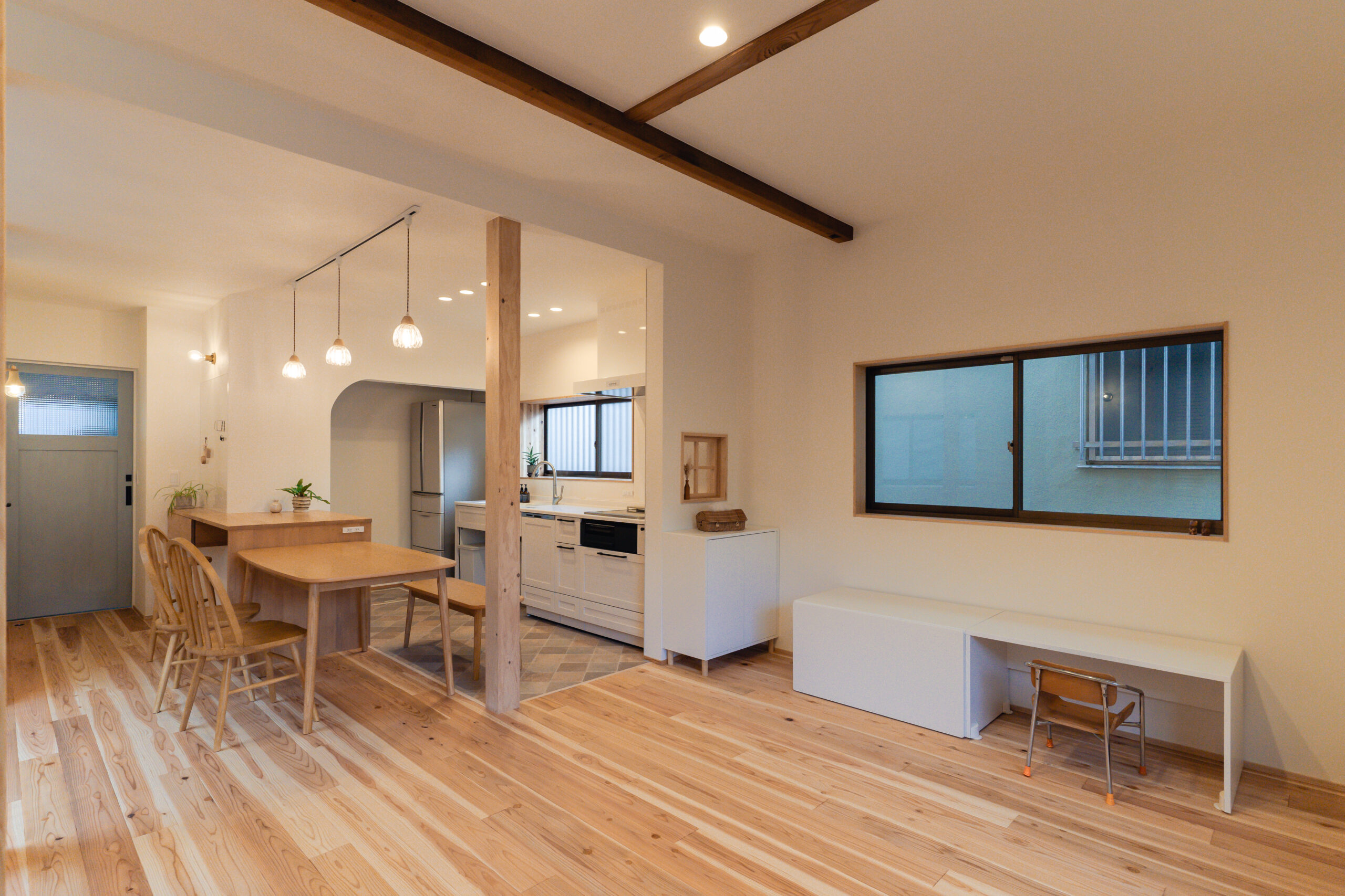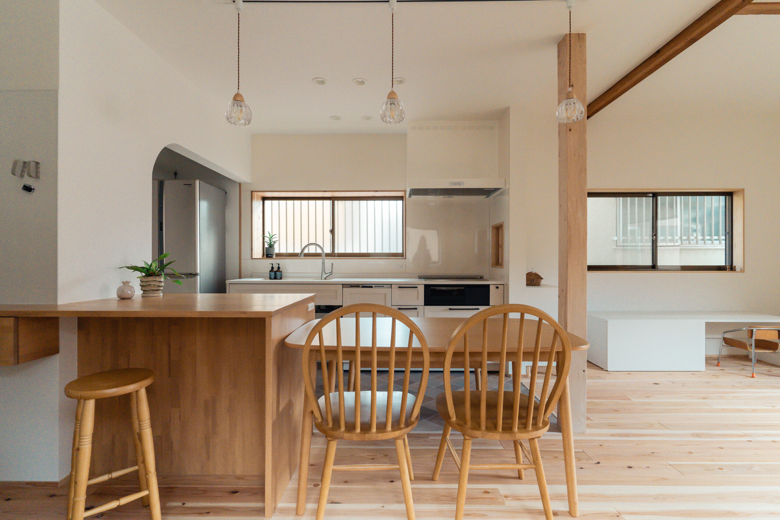 戸建てリノべ33年ほど前に建てられた木造家屋を現代の生活スタイルに合わせて改装しました。建物は3階建てで、ご両親から受け継いだものでした。夫婦はこの家に木のぬくもりと手触りを残しつつ、優しい雰囲気を持つ自分たち家族のための住まいを新たに作りました。