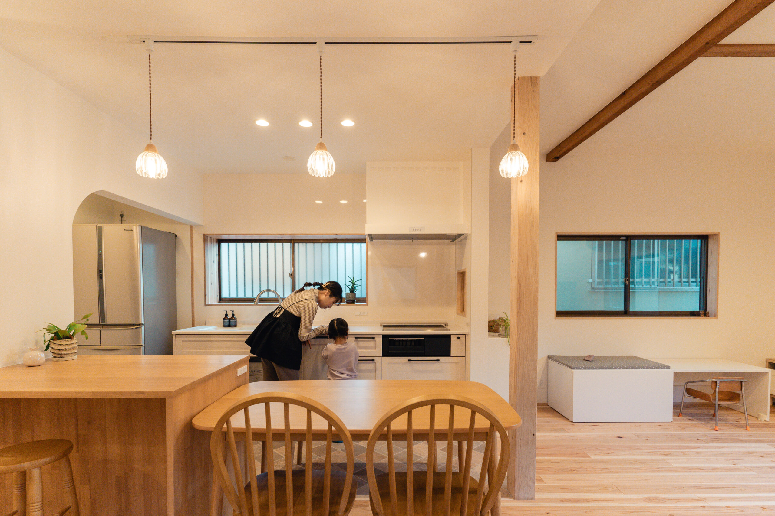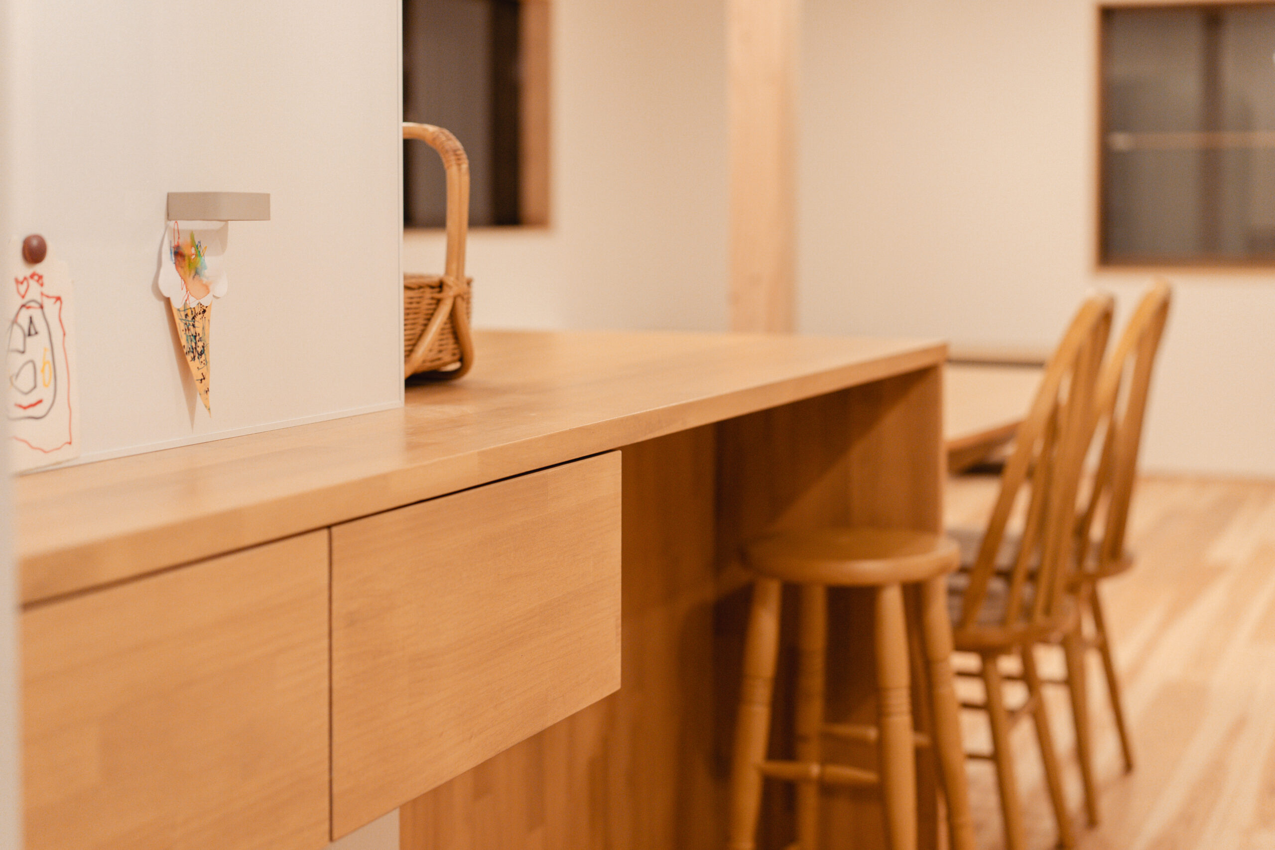 このリノベーションを通じて、3階建てという分断されがちな空間を一体的に家族の気配を感じられる住まいを実現しました。木の温もりと手触りを大切にしながら、家族が集まりやすい設計とし、優しい雰囲気の家が完成しました。