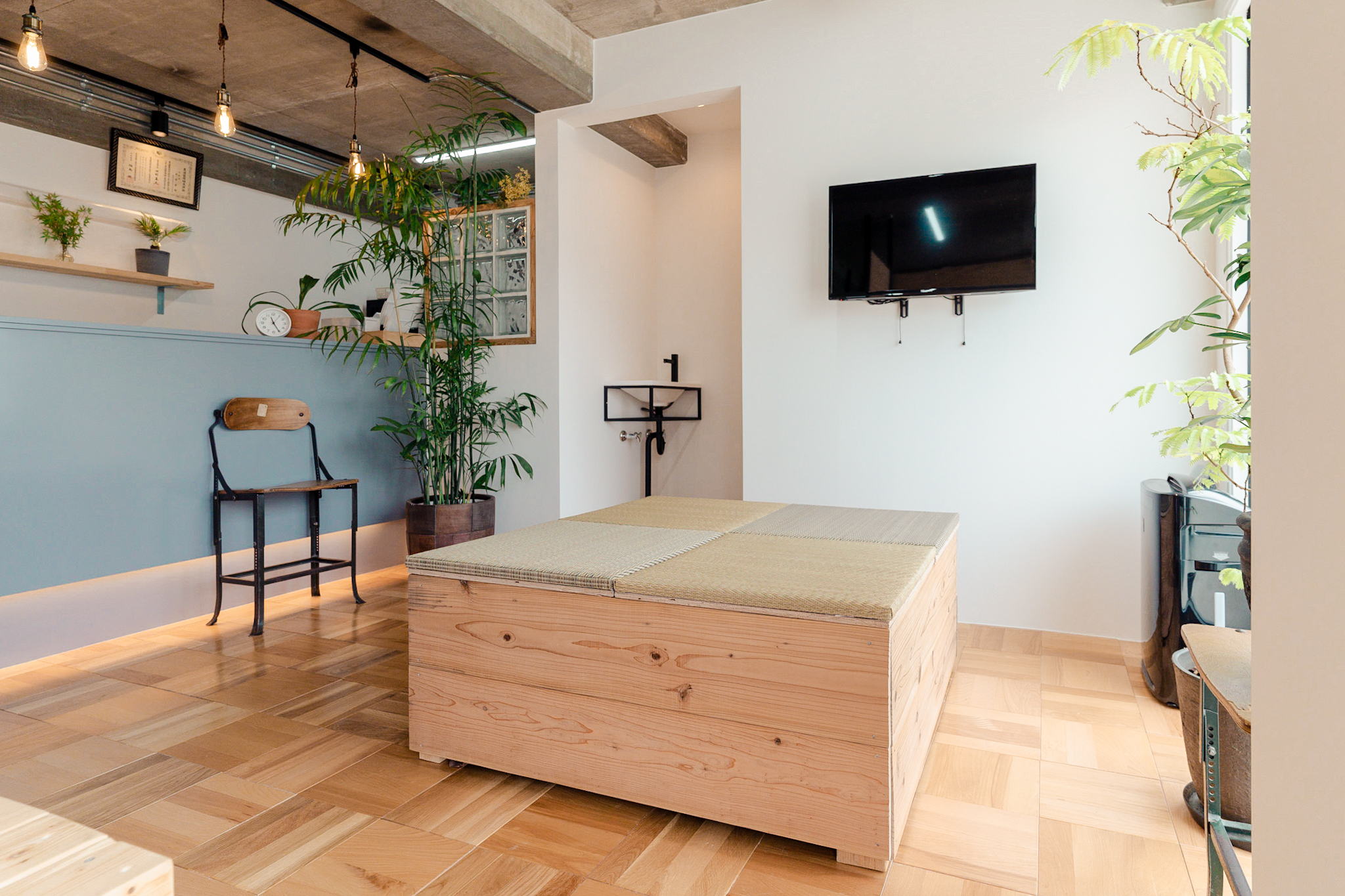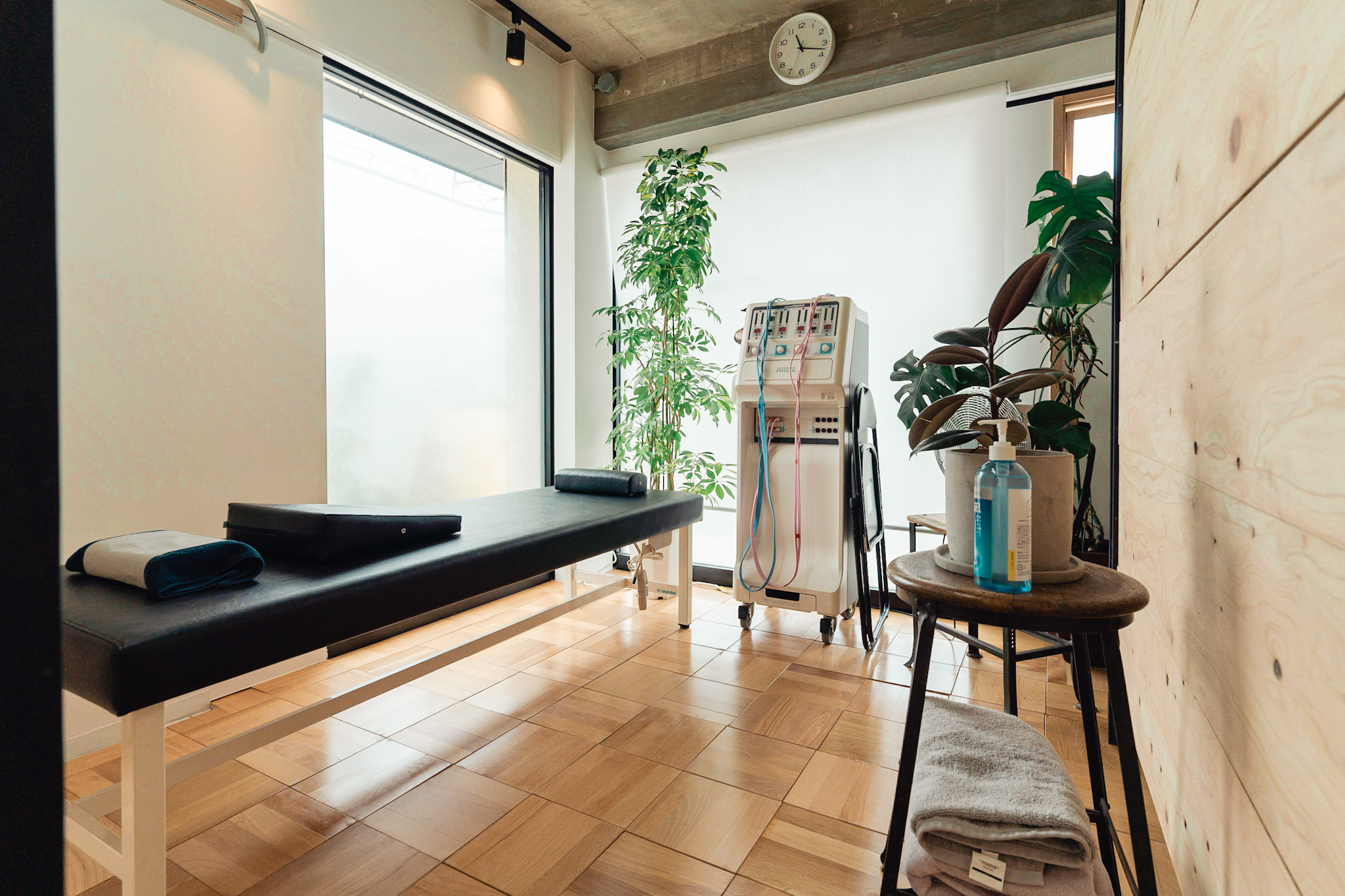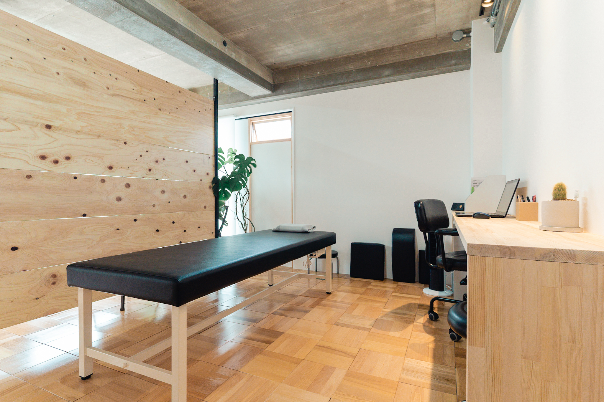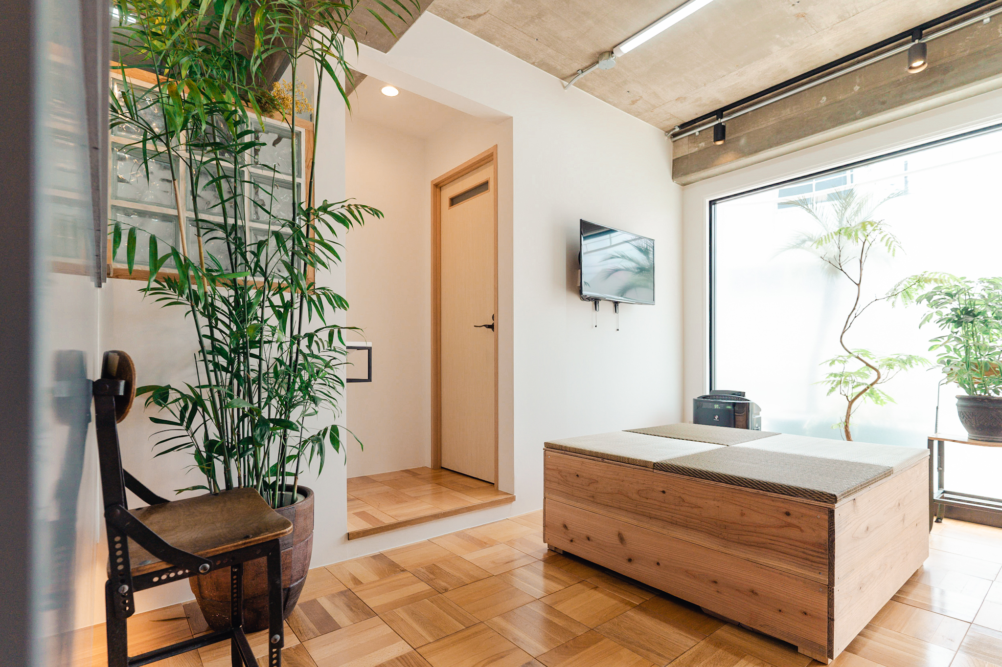 コンクリートの無骨な質感と木目や観葉植物の温かさが、来院されるお客様にとっても心地いい空間に仕上がったと感じています。