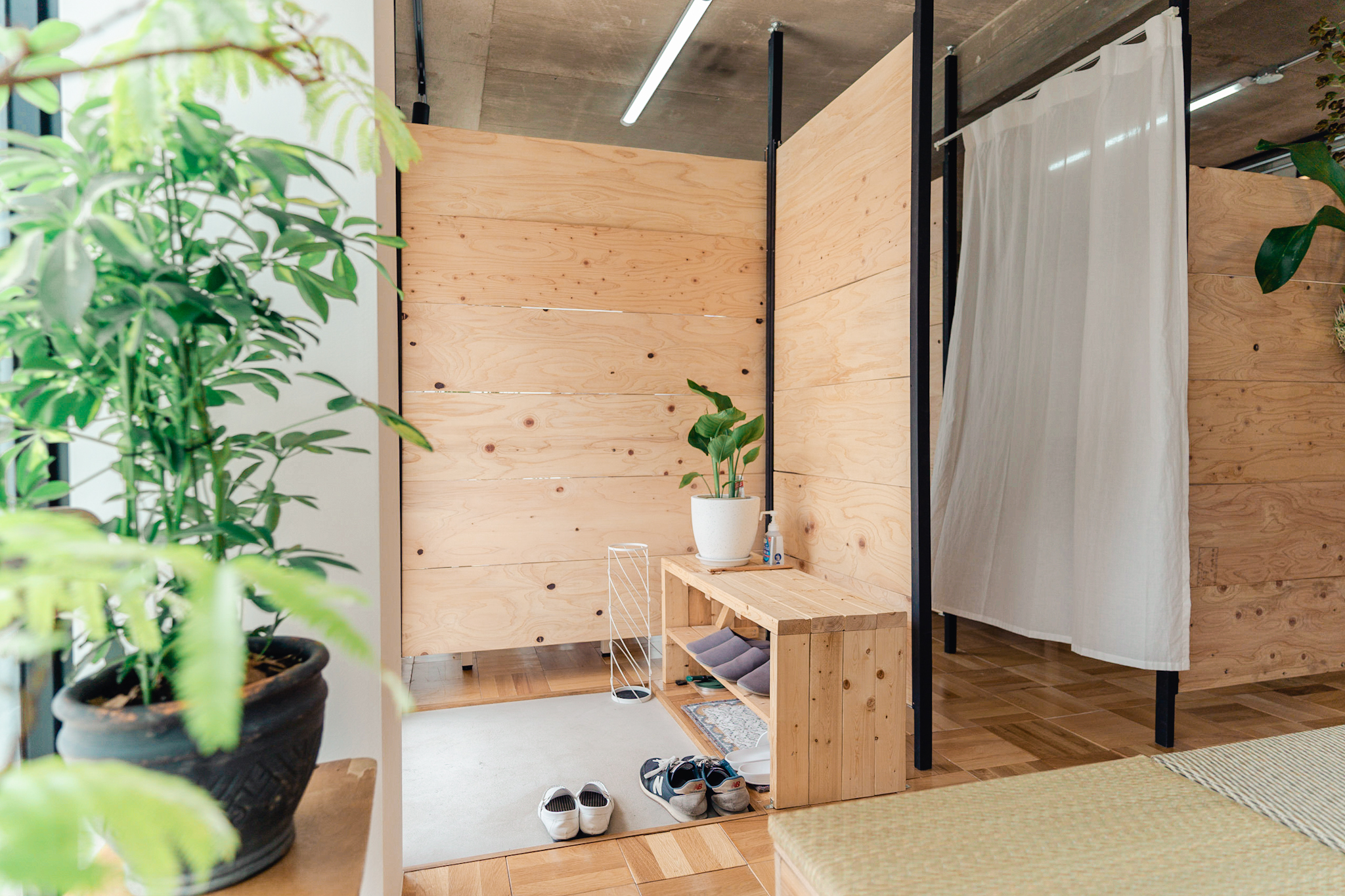 内部の間仕切りはお施主様のDIY。できる限りコストを抑えつつも統一感のある空間となるよう打合せを重ねました。