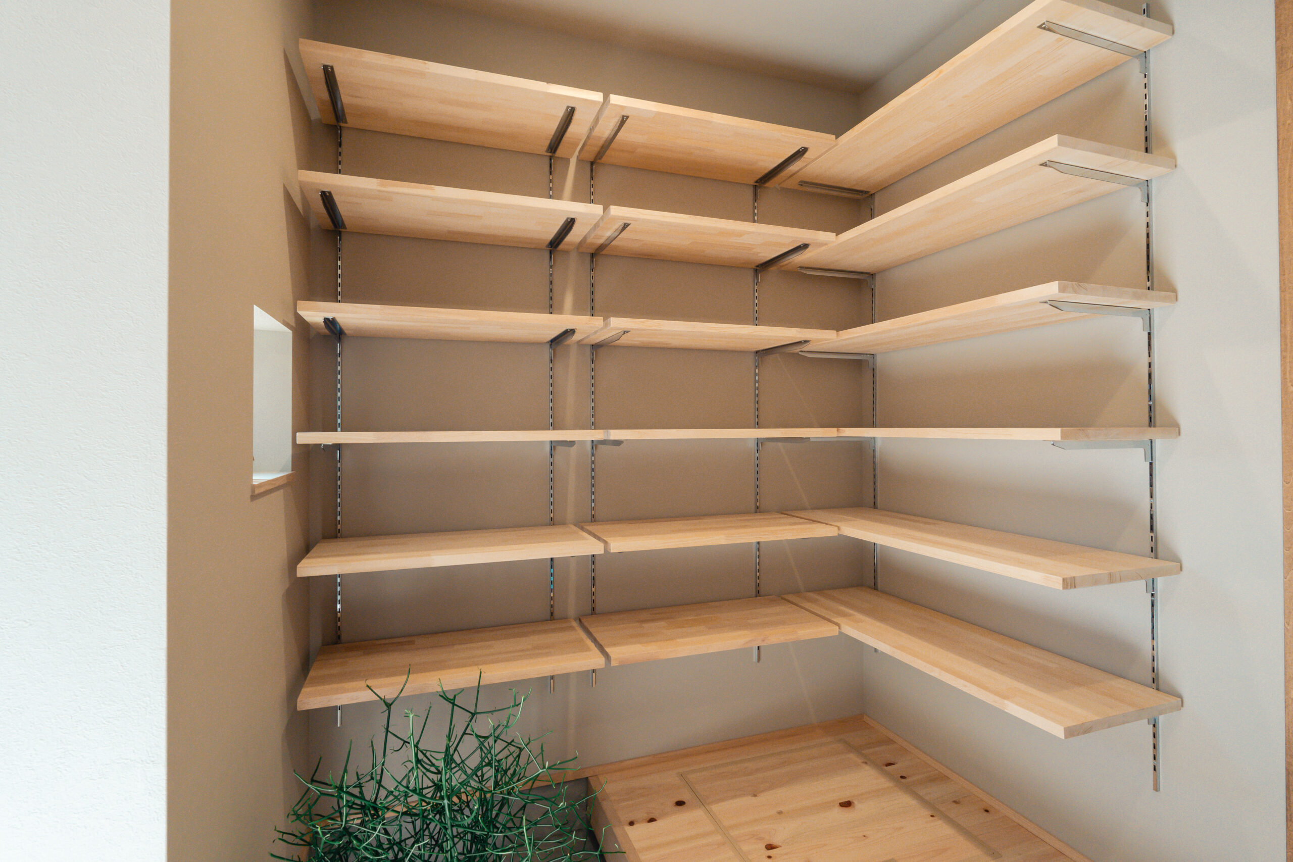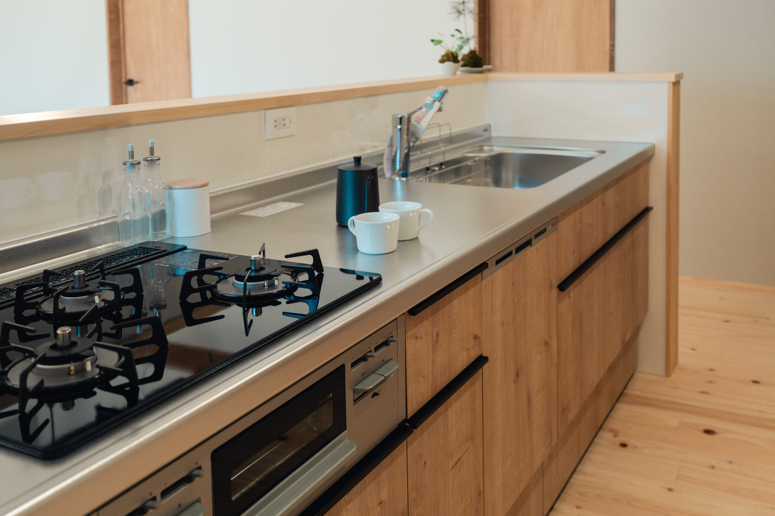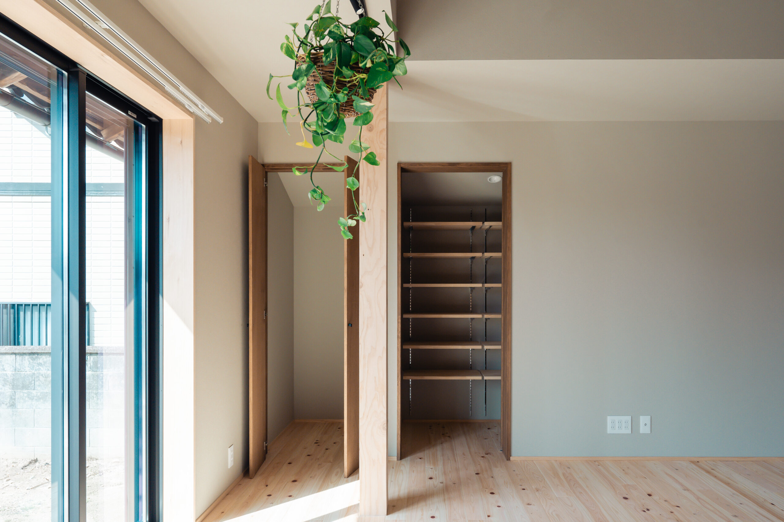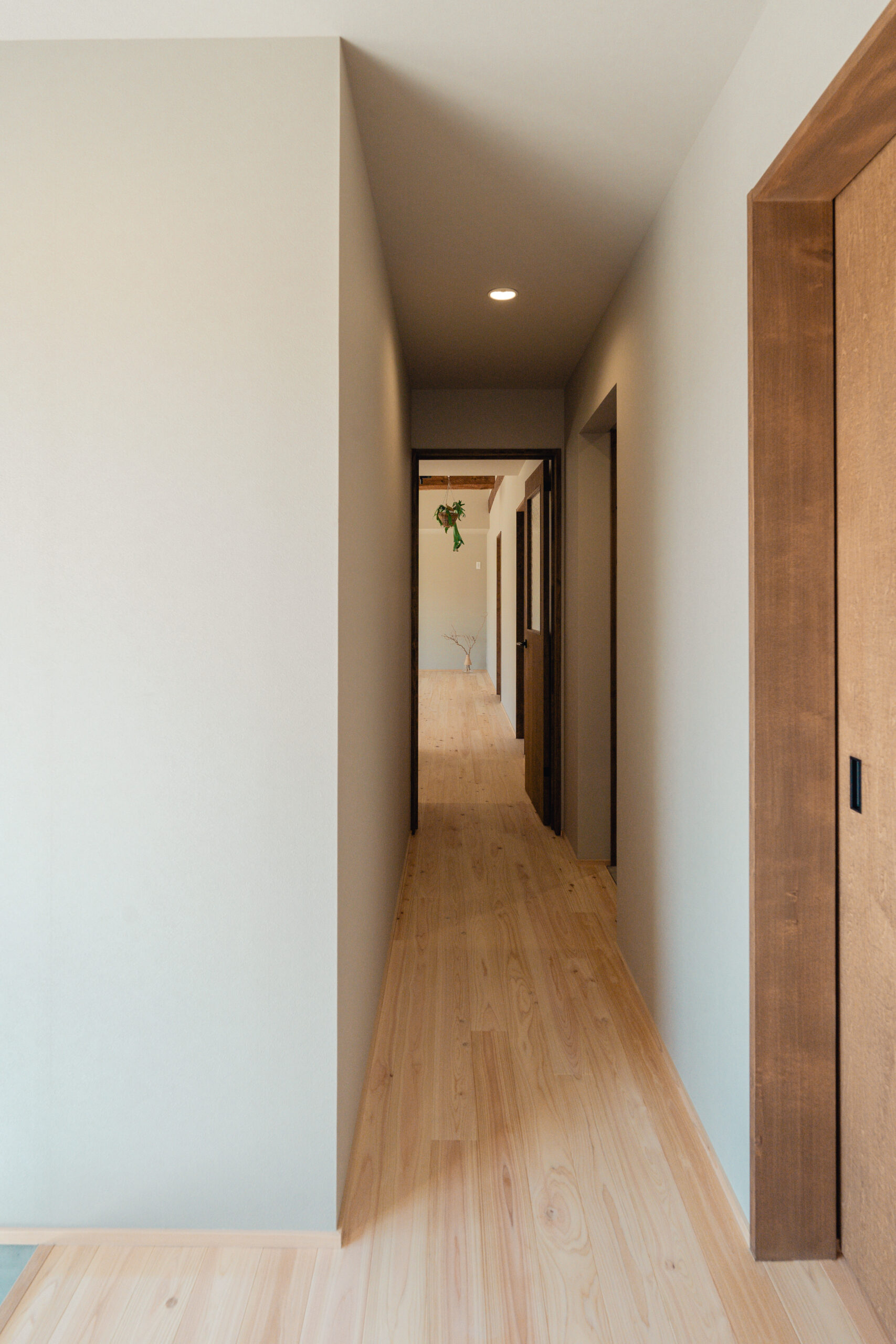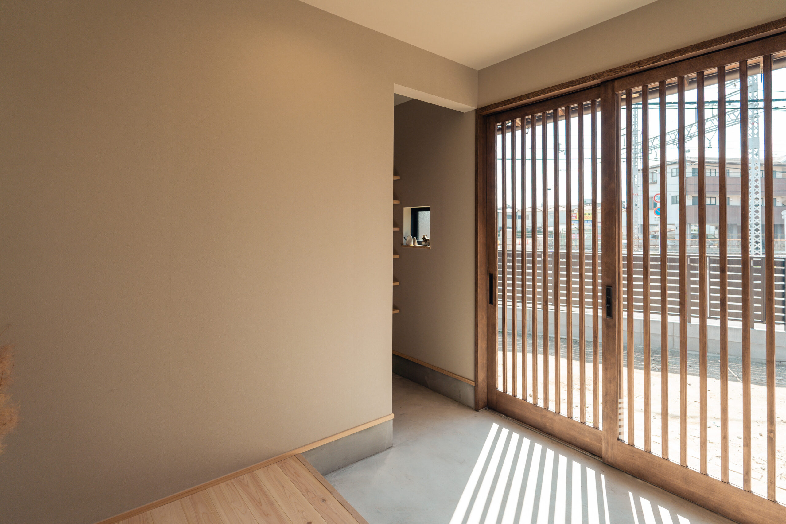 玄関から左右に土間収納を設け、左手の土間収納からはキッチンにつながっており、家事をスムーズに行うための導線が生まれています。