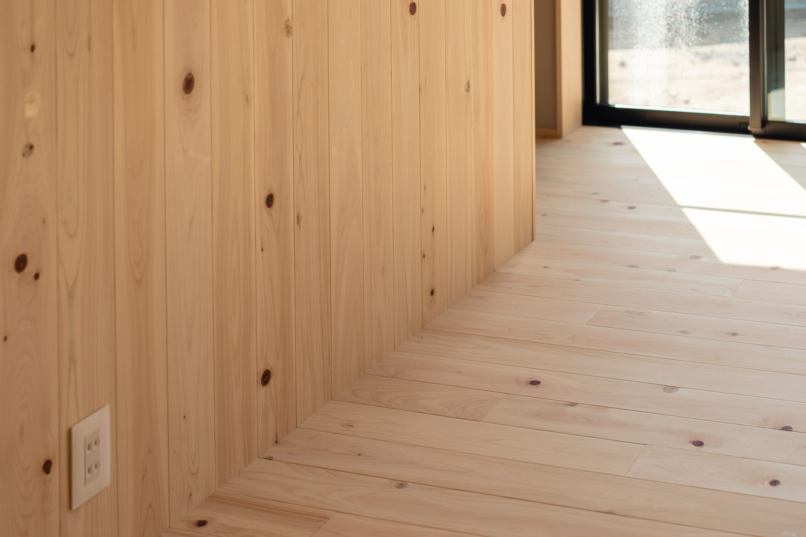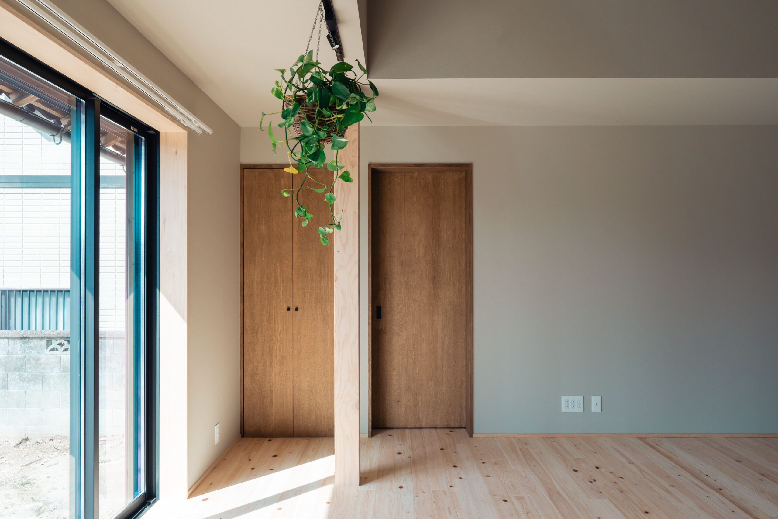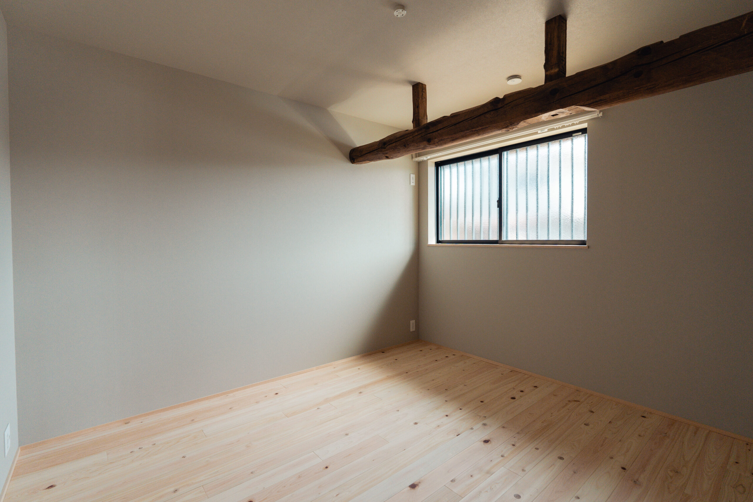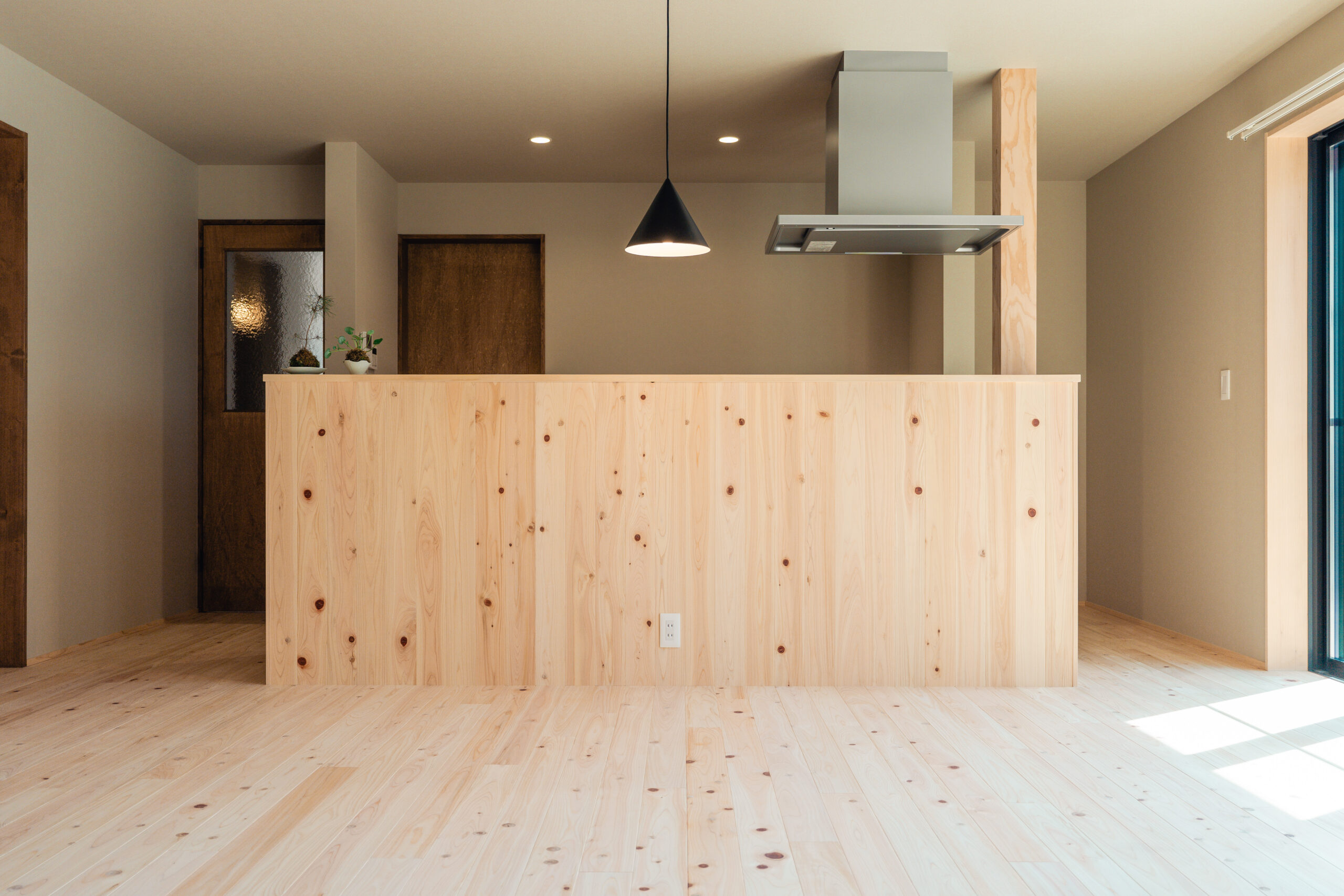 ヒノキの床と既存の柱梁のコントラストが空間に温かみと奥行きを与え、心地よく家族を大らかにつつんでくれる平屋の家となりました。
