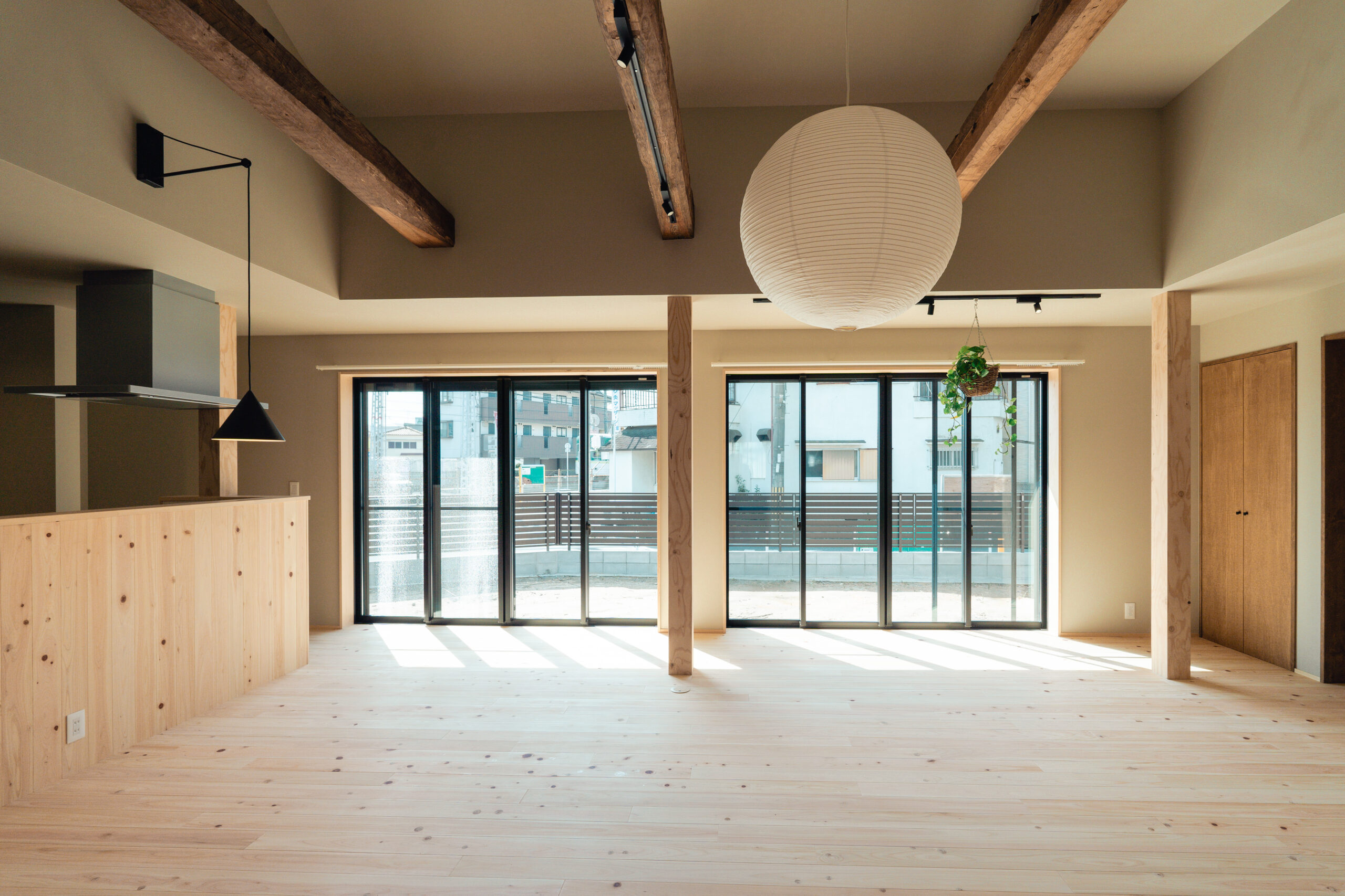 また既存柱や梁を露出することで、建物の歴史や経年の風合いを感じられるリノベーションならではの新旧が共存する味わい深さを残しています。