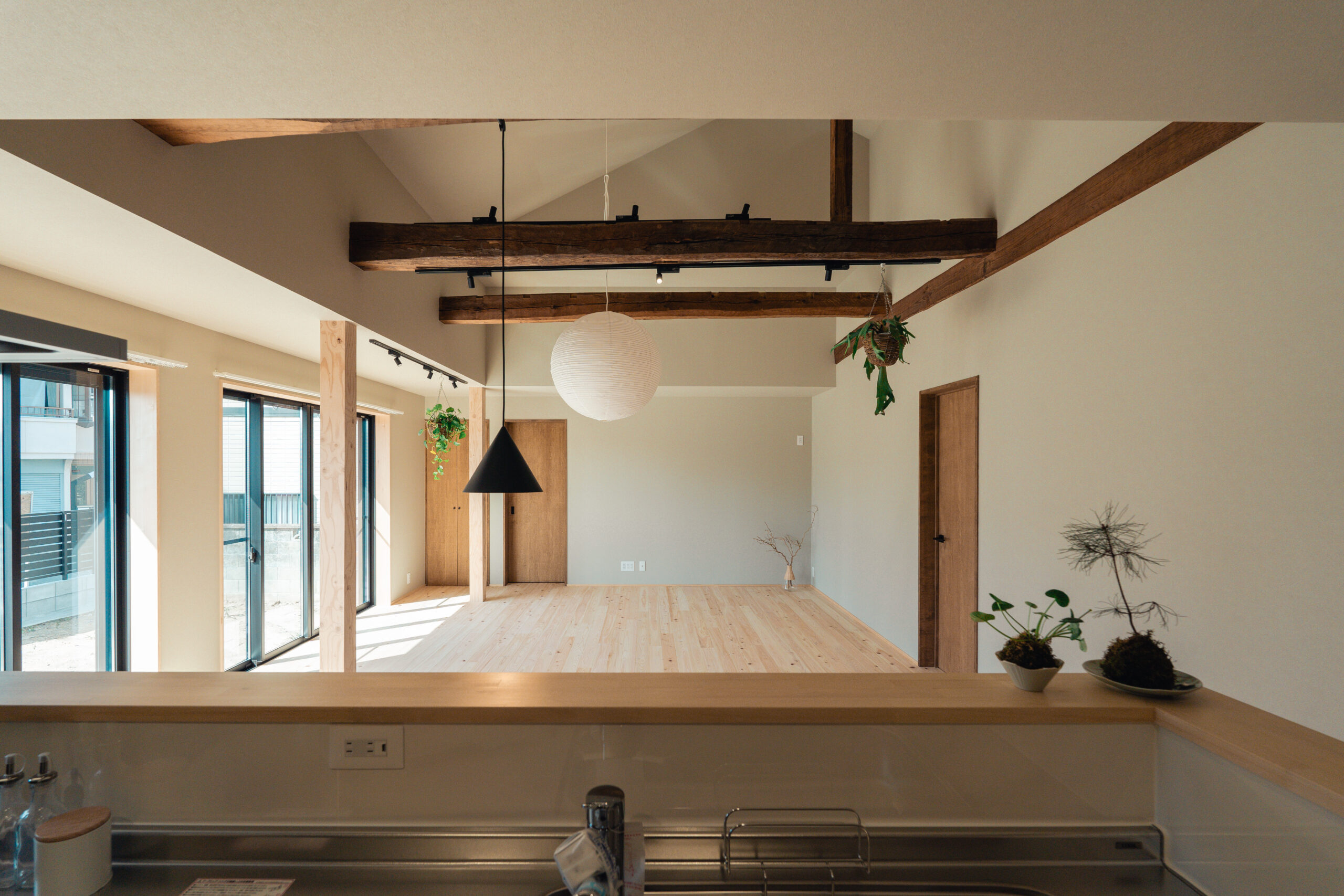 小屋裏をLDKに取り込むことで、天井の高さを活かした平屋ならではの開放感あふれる空間に。