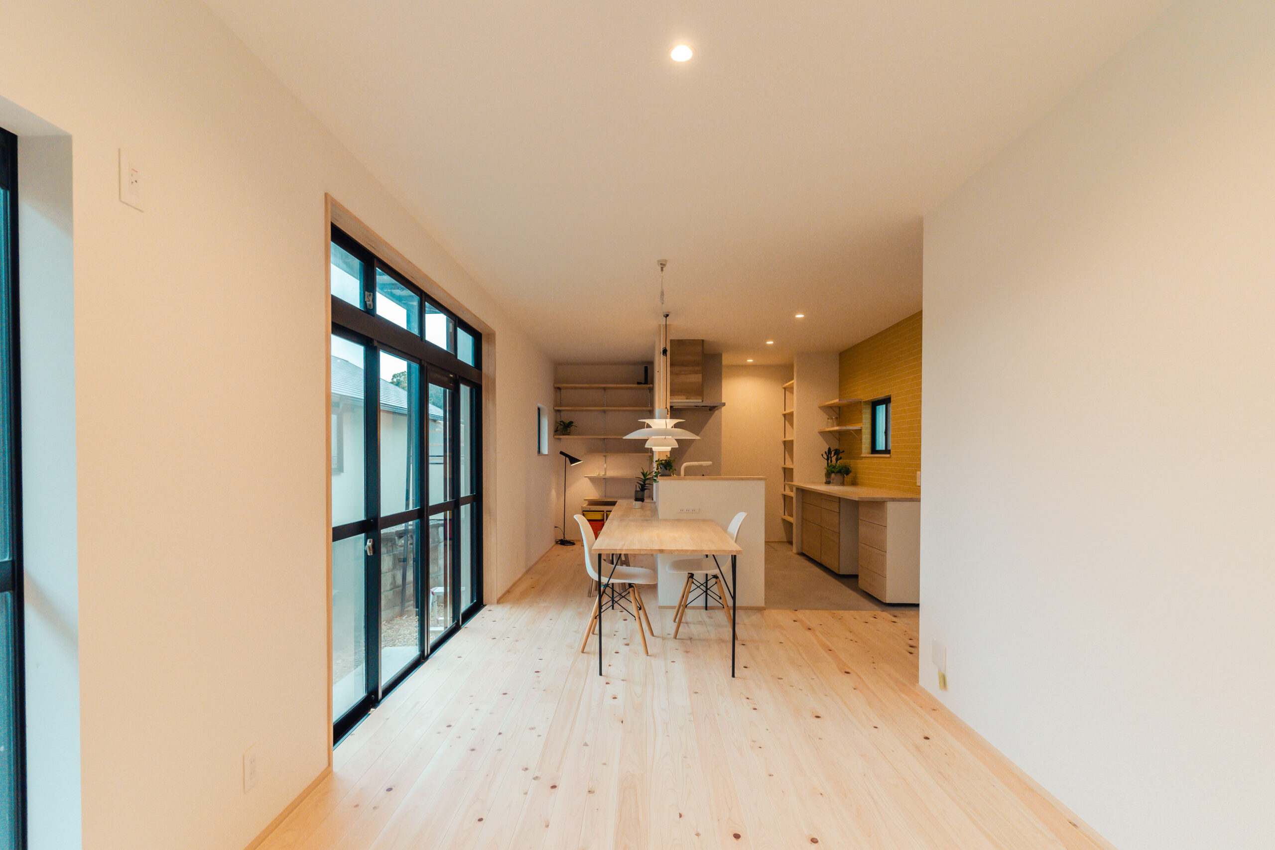 家の中で暮らしながら外を感じることができる空間を敷地の特性とリノベーションで実現した事例となりました。