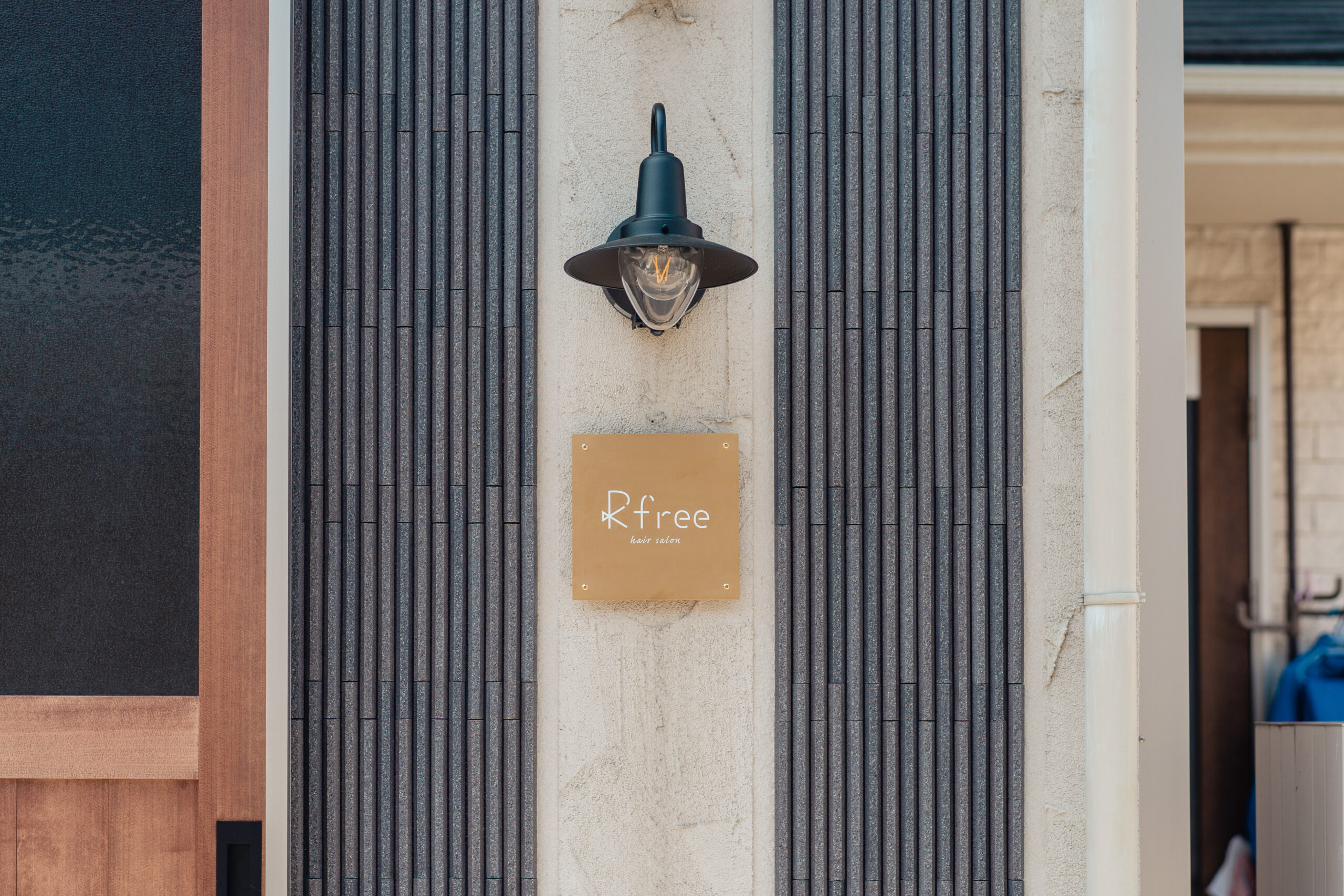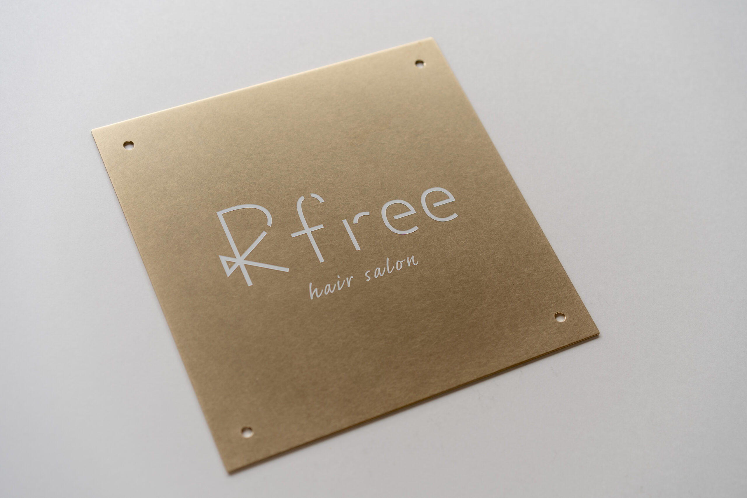 (ロゴデザイン)今回、ロゴデザインもさせていただきました。店名に含まれている意味は、R(relax、relaxation) free(自由)、お客様が自由にリラックスできる美容室でありたいとの想いを伺いました。