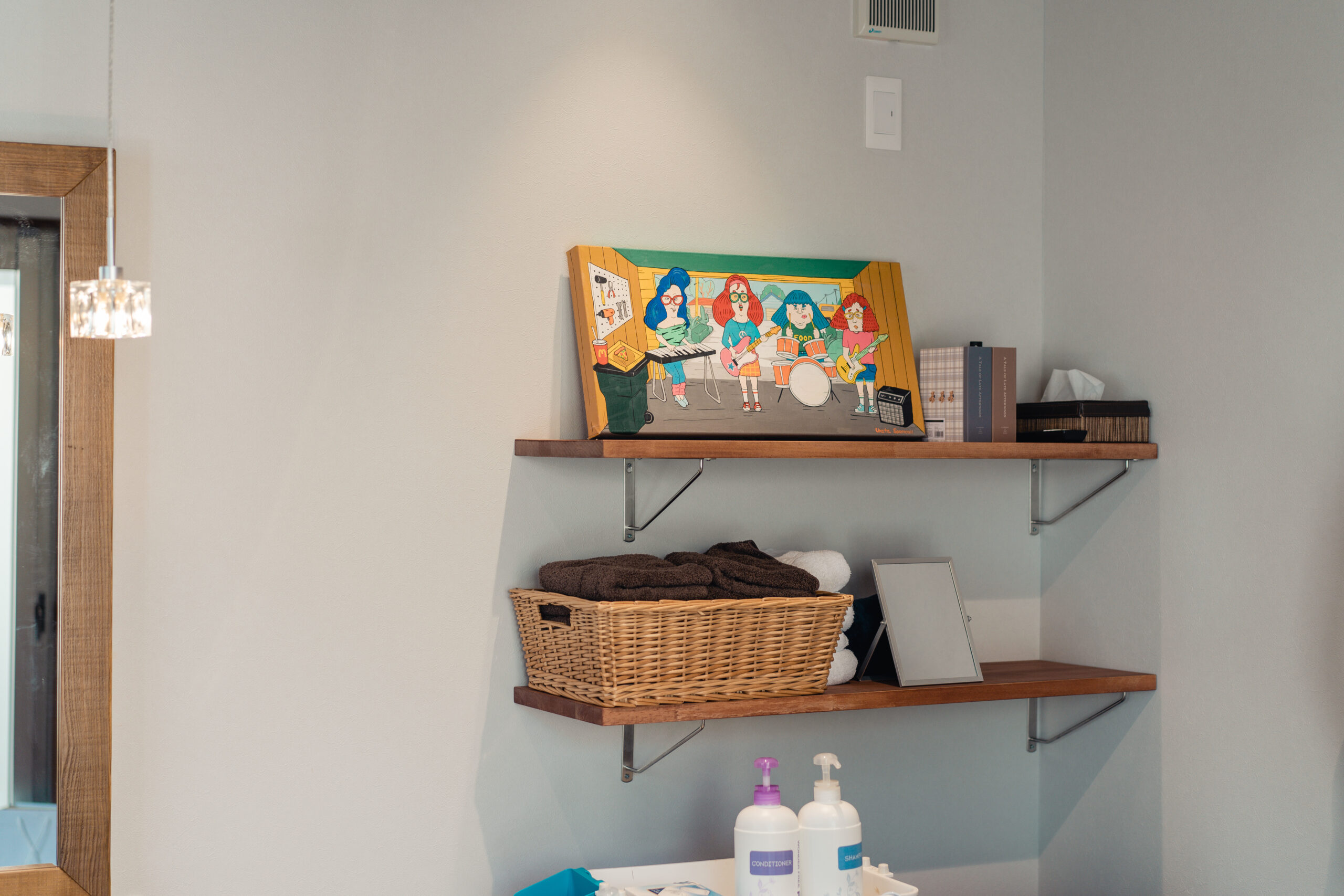 また、造作した建具・ベンチ収納とお客様が選定した家具が調和したデザインは、訪れるお客様がくつろげる空間となりました。